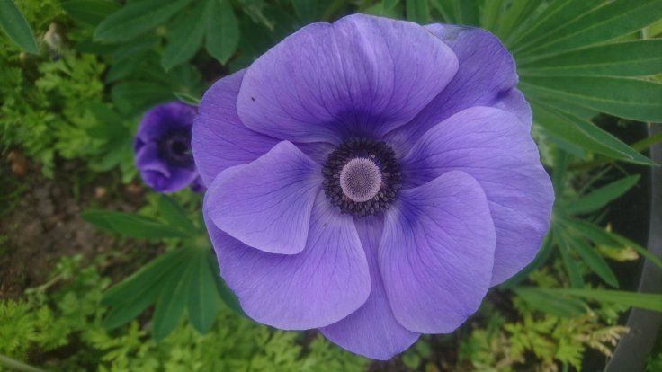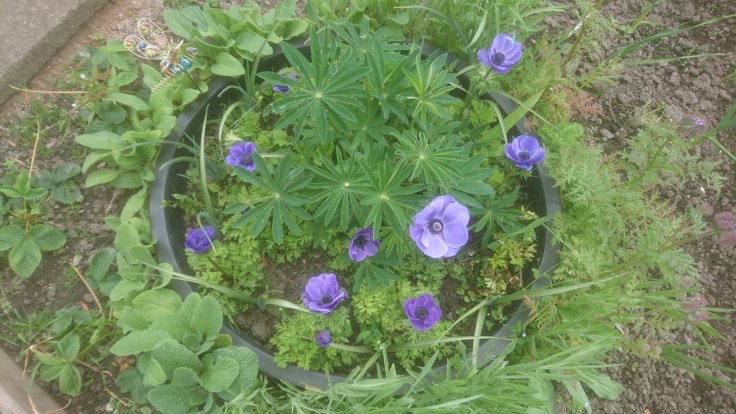 I think it’s an anemone – I planted lots of blue flowers together so I can’t be entirely sure!