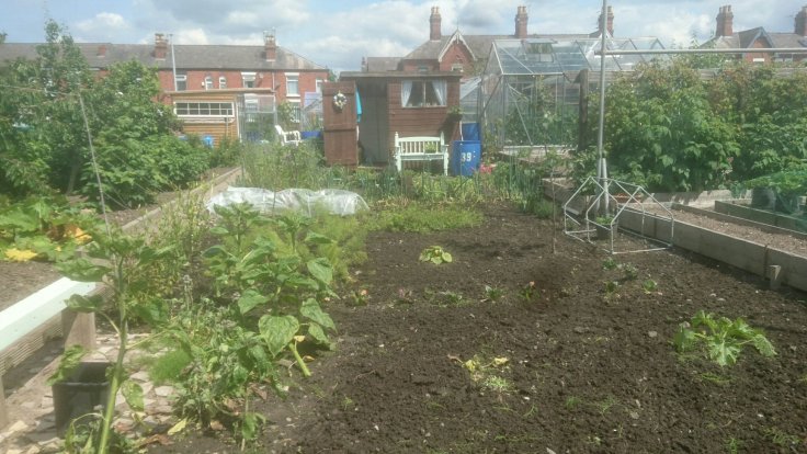 Noticing the time as well as the increasing heat, we all adjourned to our respective plots. I borrowed Cliff’s handle and spent half an hour hoeing the plot. The worst of the flooded areas are still quite damp. Hopefully hoeing will help drain the remaining moisture away. I am quite pleased with how it looks. Here’s hoping for a few more days of dry weather so the plot can drain fully and to give the plants a chance to recover!