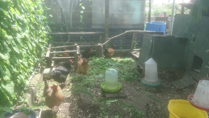 Before I left, I asked Geoff to shut the greenhouse doors in the evening so Emily and her chicks don’t fry. The plan is to move them today or tomorrow into the new coop. Although I haven’t managed to extend the run fully yet, it’s the same floor size, with taller run and a much larger nest box. Hopefully they will all like their new home!