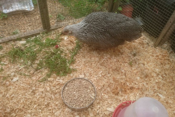 He showed us how to give her the medicine and we left sniggering at the fact she has dog medicine. I carefully put her back into her coop and she immediately started on the greens I had dropped in earlier today. There is certainly nothing wrong with her appetite!