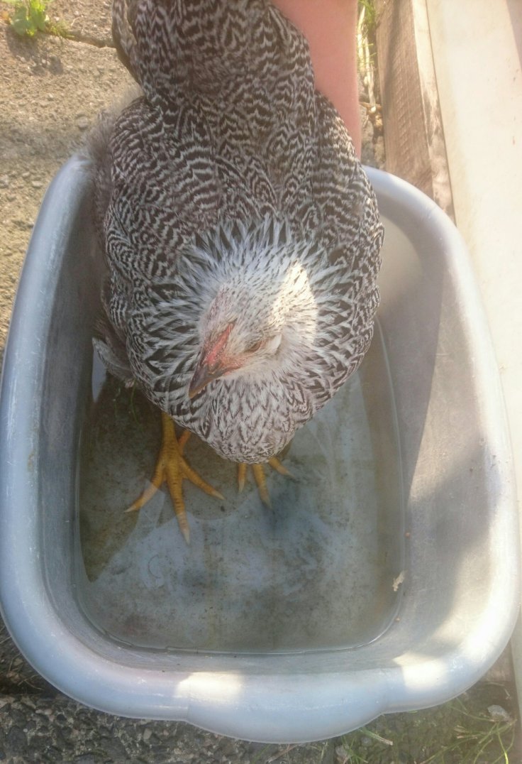 Luckily, it’s cooled down massively. In fact, it has been raining non-stop the last two days! The chick was struggling but I gave her a bath, just dipping her legs in for a few minutes. It definitely helped her cool down!