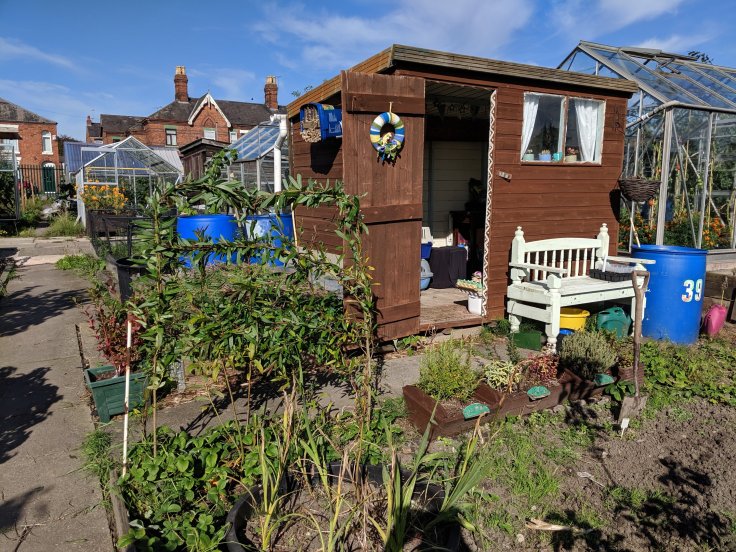 This morning, free from the shackles of work, I walked happily down to the allotment. There were several people down at the clubhouse already so I joined Cliff, Coco, Steve, Chris and Mick the Greek for a while.