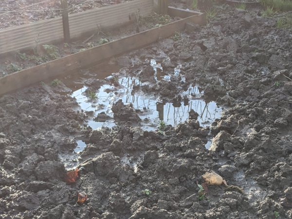 The last few days have been relatively dry and although there are still puddles, the rest of the plot is drying out. Or so I thought. Avoiding the puddles, I walked across the plot to grab the spade. Much to my horror, two steps in I lost my shoe and had to drag myself out... Continue Reading →