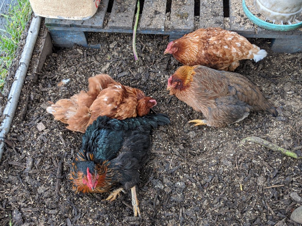 Cliff had a good look and recognised it as an overgrowth. Apparently it can happen quite often but I haven’t had any chickens with it before. He recommended some nail clippers to cut off the growth. We met down on site and Georgie clearly had sensed something was up because she hid under the nest box. After some poking under the nest box with a large stick, we managed to get her out.