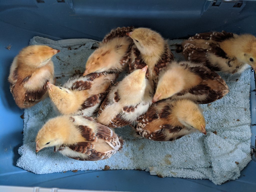 This morning we were busy preparing for the arrival of the new chicks. Works can’t have them anymore and my colleague who is taking three chicks isn’t able to have them due to risks associated with COVID-19 for her family, meaning all 9 chicks will be here for a few weeks. Fortunately, work is lending me the entire set up and enclosure which makes it easier. They are still too small to go outside but they can cope being in a warm house without the lamp. When they are bit bigger, they will go into a small enclosure in the greenhouse. Such are the difficulties with dealing with chicks without a broody hen!