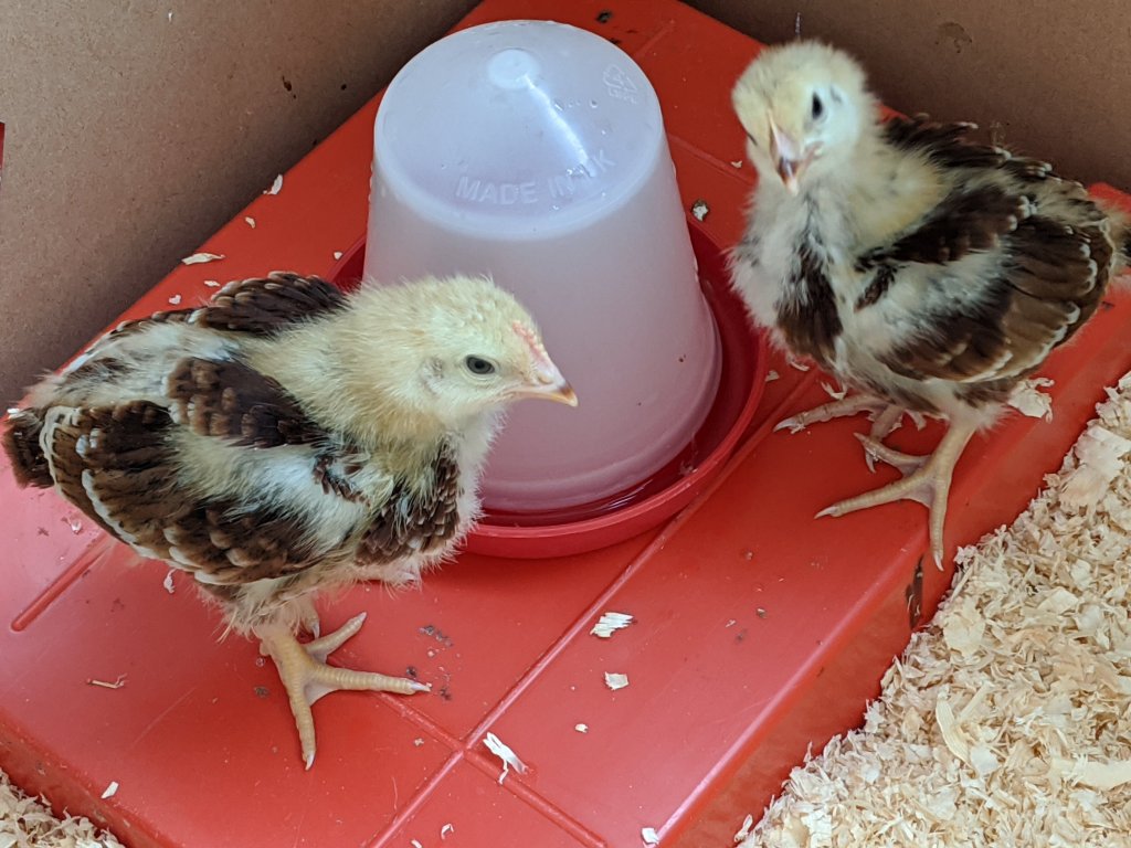 When we got home, we checked up on our little chicks. After a couple of days of fighting they seem to have calmed down. We definitely have a few cockerels – my guess is 4 with the possibility of one more. The biggest one managed to jump cleanly up onto the edge of the enclosure today. Clearly pleased with itself, it came face to face with my terrified cat. She had no idea what it was or what to do with it. To stop the chicks getting out of the coop, we have placed a thin net over the top. Hopefully this will work for a few days before we will transfer them to the greenhouse.