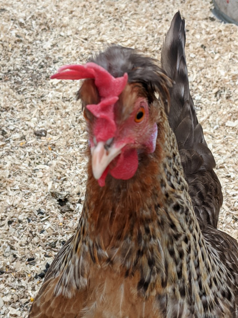 This morning we arrived on site and were met with the news that Katie had passed away overnight. Cliff had popped in this morning to check on her and found her body in the nest box. It’s sad because she had no apparent illness, just seemed a little quieter the last three days. She was an ex-commerical chicken who we rescued through a charity which rehomes thousands of chickens from farms every year. Despite laying very few eggs, she enjoyed a happy 9 month retirement in the fresh air and spoilt with all the treats we give our girls. Katie would always be between my feet assessing whatever I was doing whether I wanted to be judged or not. Our other two rescue hens, Georgie and Hattie continue strong and I hope we can keep them going for a long time.