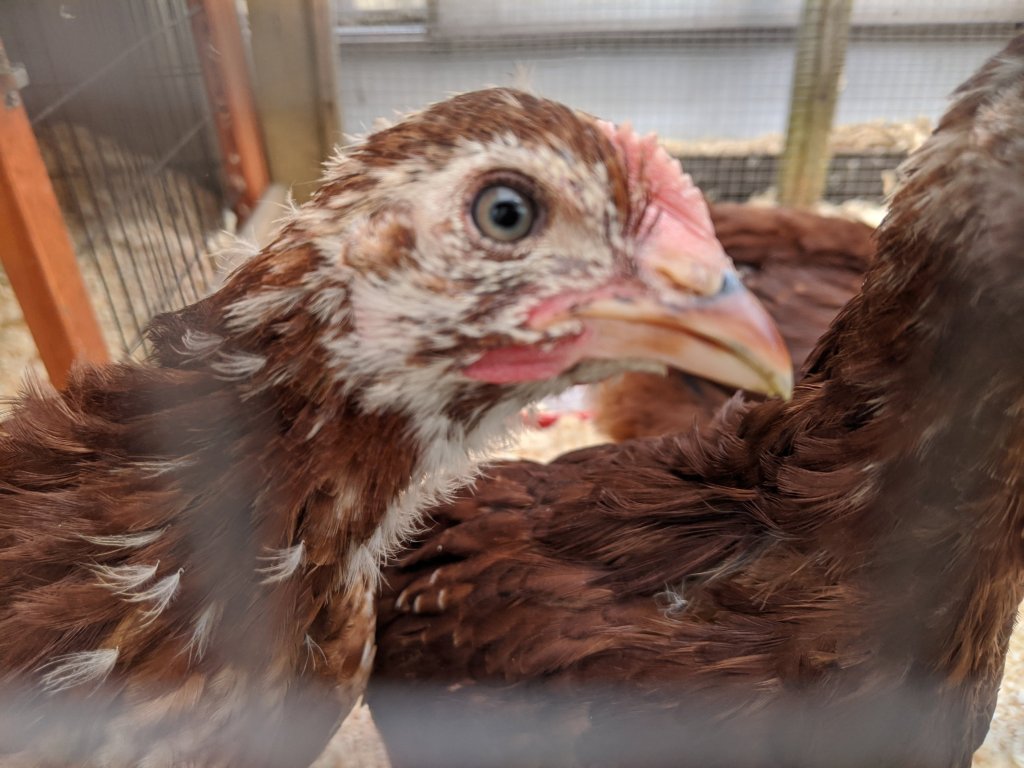 Rey was outside waiting for me. Leia hollered from inside the nest box. I cleaned out their water bowl which they insist on filling with dirt and chippings every day. Next I opened up the nest box to top up their food. Or tried to. As per usual, they had tipped it over. Weirdly, it was tipped over right near Leia. I reached in and she pecked me! She looked really angry so I made a hasty retreat.