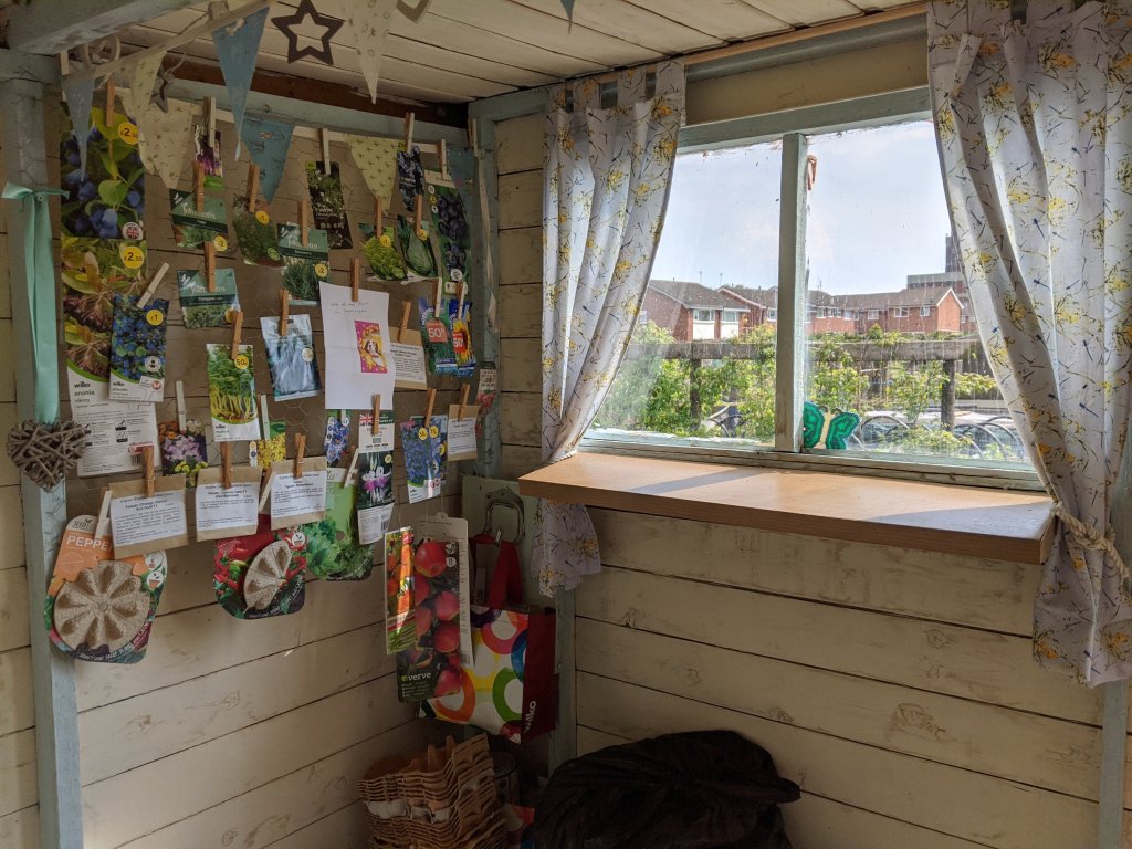Today turned out to be a long day down the allotment. I walked down to the allotment to find lots of people enjoying the sunshine, busy on their own plots.On my way down to my plot, I ran into Dave the Plod who filled me in with all the happenings over the past few days. The drama on the site in the past week is unbelievable. I really don’t envy the committee having to sort it all out. On the main path I said hello to the guys in passing as I went to feed the chicks. They had managed to knock over their water and throw sawdust into their food bowl. Telling them off, I disappeared off to sort it all out. I ran into Geoff by the tap and we had a chat in the sunshine.