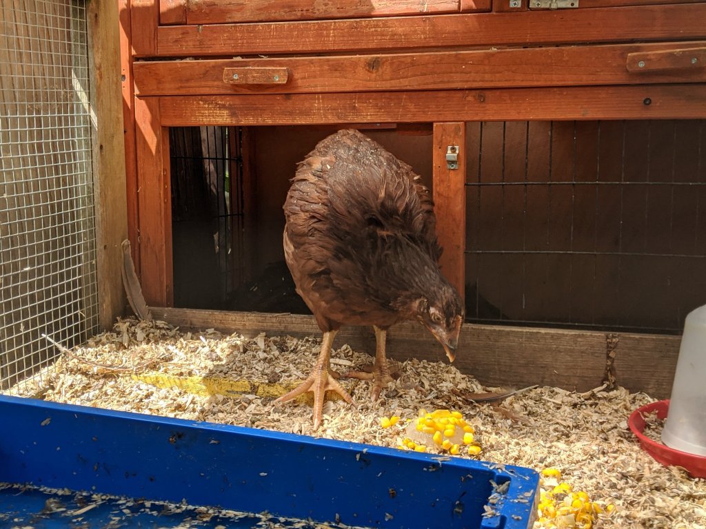 Before I left, I went to see how the chicks were doing with their new ice treats. Answer, not well. The ice melts slowly, releasing the sweetcorn. To encourage them to try it, I tried hand feeding the corn to them. They still weren’t particularly impressed. I may try them with peas tomorrow instead.
