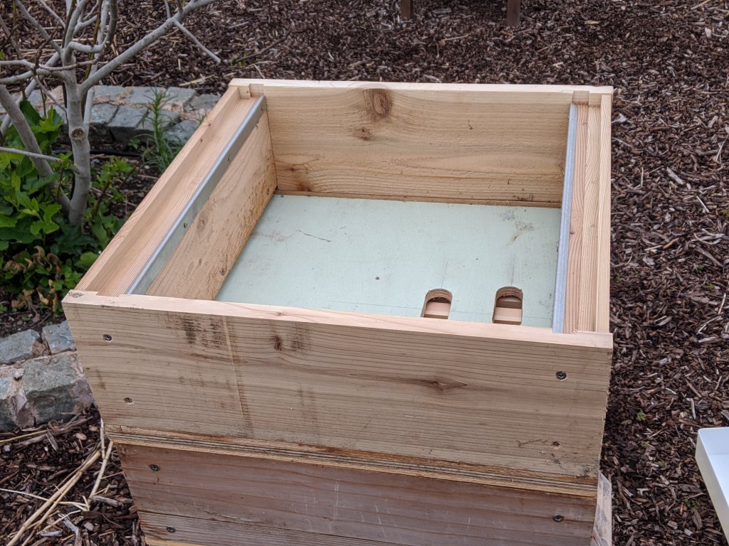 I decided to weed a section of the plot. It’s so much easier to do now that the plot is split. There is some big psychological barrier about digging over or weeding a massive expanse of the plot versus an eight foot by four foot bed. As I was finishing it off, Steve appeared and asked for a hand in putting the feeders on the hive.
