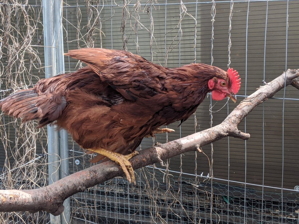 This morning I walked down to the allotment in between heavy rain showers. The chickens ran to meet me, some of them looked like they had sat out in the rain. Georgie in particular looked especially bedraggled. Quickly, I topped up their food and water and collected an egg.