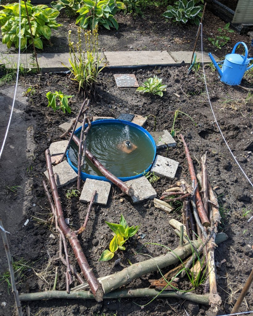 Tracy and Brad came to have a look at the bog garden and the new plants. Everyone agreed that it was looking good. The plants seem to still be green and there is no lack of water in the bog garden! Or anywhere else on the plot judging by how much I was sinking into the soil on the path. Despite weeks of walking up and down the path to compact it, it is so water-logged that it is soft. I chatted to Tracy about how the bog plants that had gone in came with labels saying pond plants. I was worried that they may not survive but Tracy said that they were used in boggy conditions next to ponds so she was quite confident they would thrive. I guess we will find out over the next few weeks!
