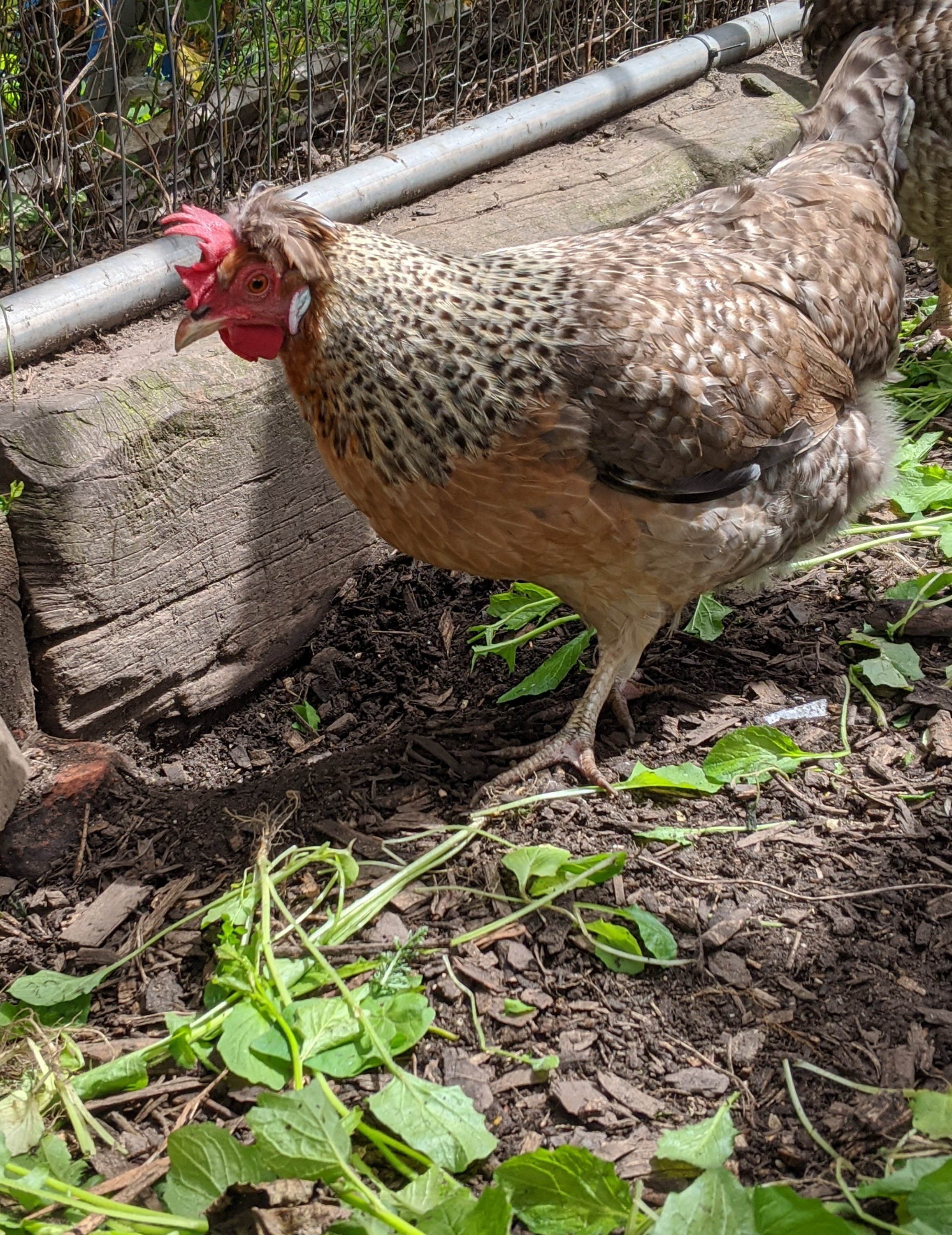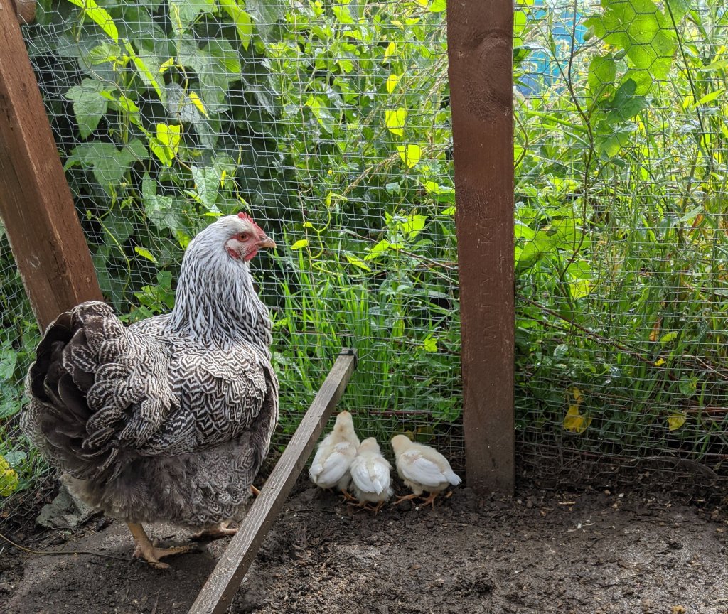 Over in the broody coop, Leia was busy clucking at her chicks. They are continuing to grow and I spent a happy few minutes watching them explore the run. Three of them seem to have slightly bigger and redder combs which may suggest we only have two girls. But it’s still early days. I am by no means an expert and I do enjoy living in denial about chicks being cockerels for as long as possible.