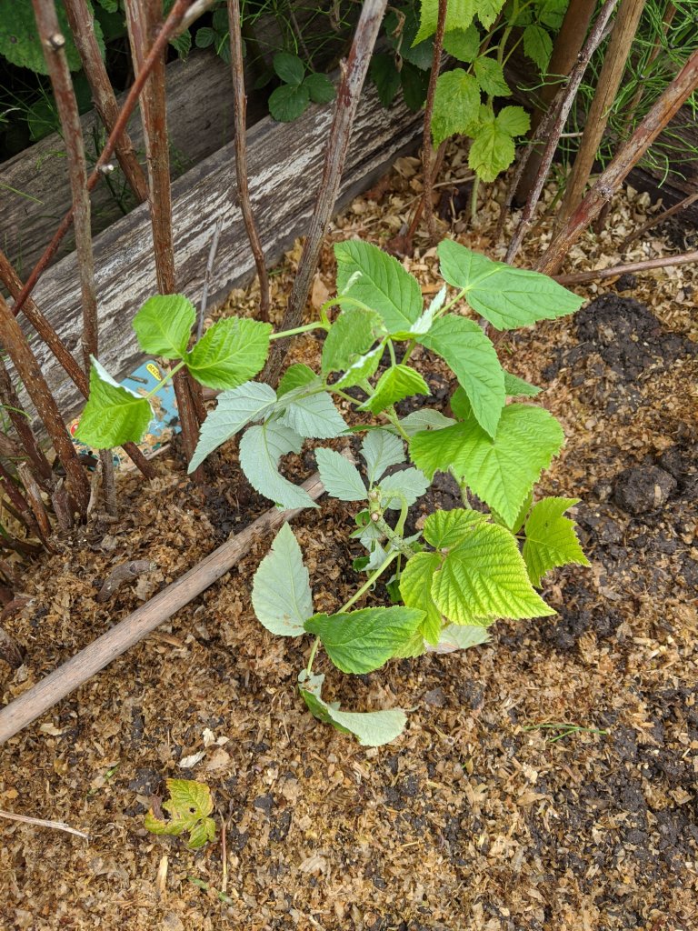 I stopped to have a chat with Sarah, Liz and Andy. They had Daisy with them so I spent a happy few minutes making a fuss of her. Leaving them to their weeding and Seaweed Sunday watering, I decided I would tackle the raspberry bed. For some reason, hardly any of our raspberries have grown this year. We have always been really successful with them before. I spent some time weeding around the canes and removing the old dead ones. I left some in, in the hope that they may suddenly burst into life. Somehow I doubt it but I am an eternal optimist! Yesterday we bought two new raspberry plants – a red one and a golden one. There is something about golden raspberries that taste so much more delicious than the red ones. Mind you, if we grew more red ones, more might make it home uneaten! I planted the new plants in the middle of the raspberry bed and with the forecast rain this evening, they will get a thorough watering.