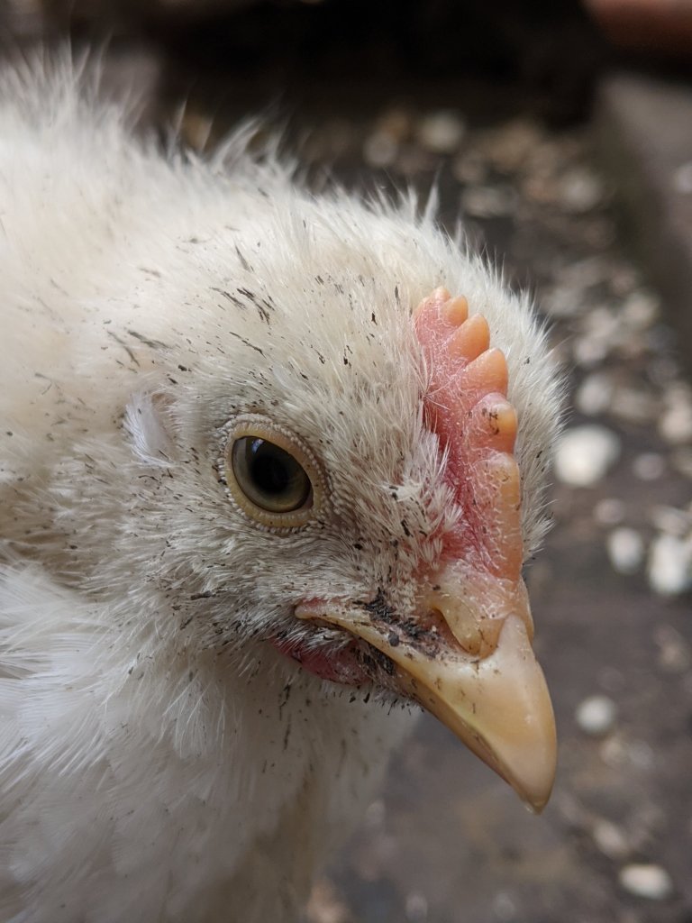Today I dashed down to the allotment worried about what state I would find Pop in. Upon opening up the nest box, I found Pop had shuffled forward so she had her head and shoulders out of the box. I picked her up and put her outside near the food bowl so she could enjoy the fresh air. I watched closely to make sure the others didn’t pick on her. They walked around her, pecking at the food but weren’t having a go at Pop. I threw out some sunflower seeds and mealworms to keep the others happy.