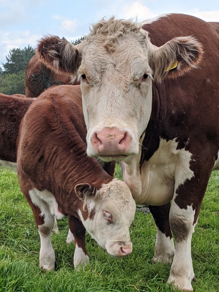 On our last morning, we were woken up by the farmeroving his herd across to another field. Some of the cows were rather unimpressed with being moved and loudly made their disapprobation felt. I went up to the top of our field and watched them. One clearly believes it’s a donkey judging from the noises it was making!