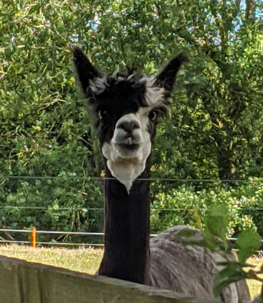 One day we went for an afternoon stroll which somehow turned into a massive 8 mile hike. As we walked about we came across two farms which had a mini alpaca herds – one reminded us strongly of one of our moggies at home. It was something about the vacant expression that was rather familiar.