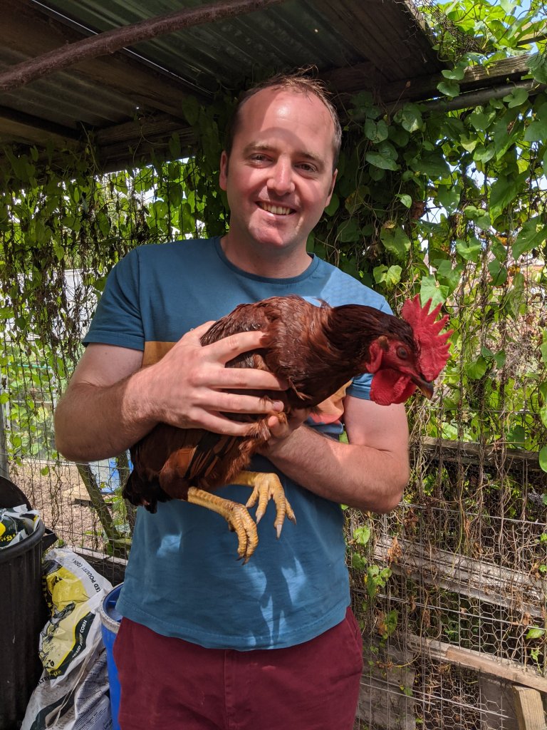 Today was rather a bitty day. We ambled down to the allotment at lunchtime to feed the chickens. They were all happy to scoff their treats and then ignore us. My husband amused himself in picking up Tommy for a cuddle. Needless to say, he wasn’t impressed.