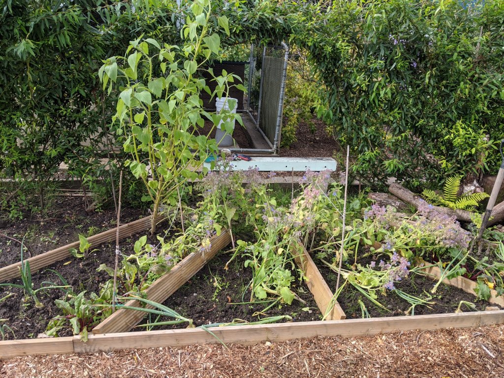 The weird thing with weeding is that sometimes you can get into a zone where you can clear large sections of the plot. Over the next hour and a half, I weeded the sunburst, the apple tree section and made a start on the section opposite the sunburst. It definitely looks much better although I do still need to finish off the other sections.