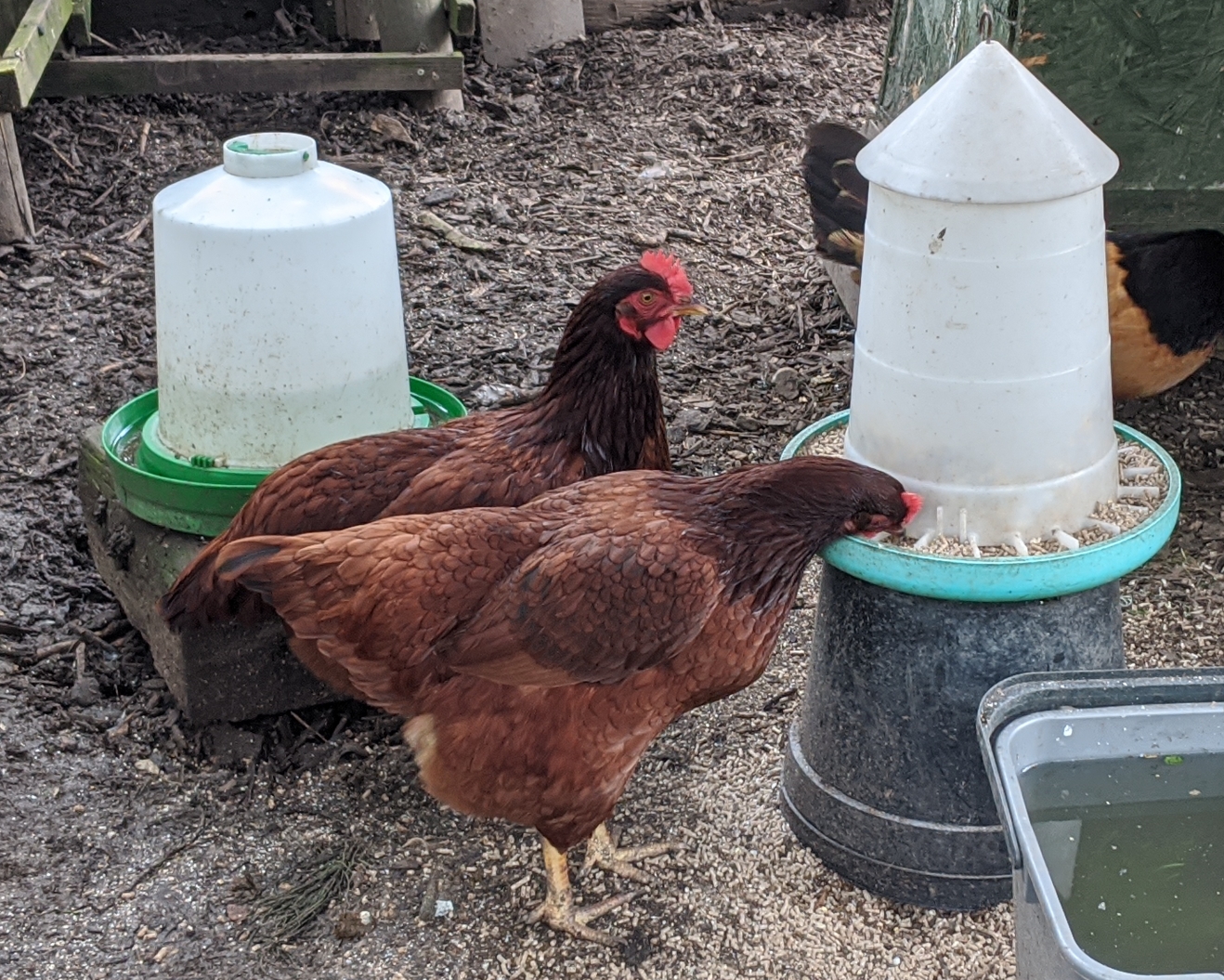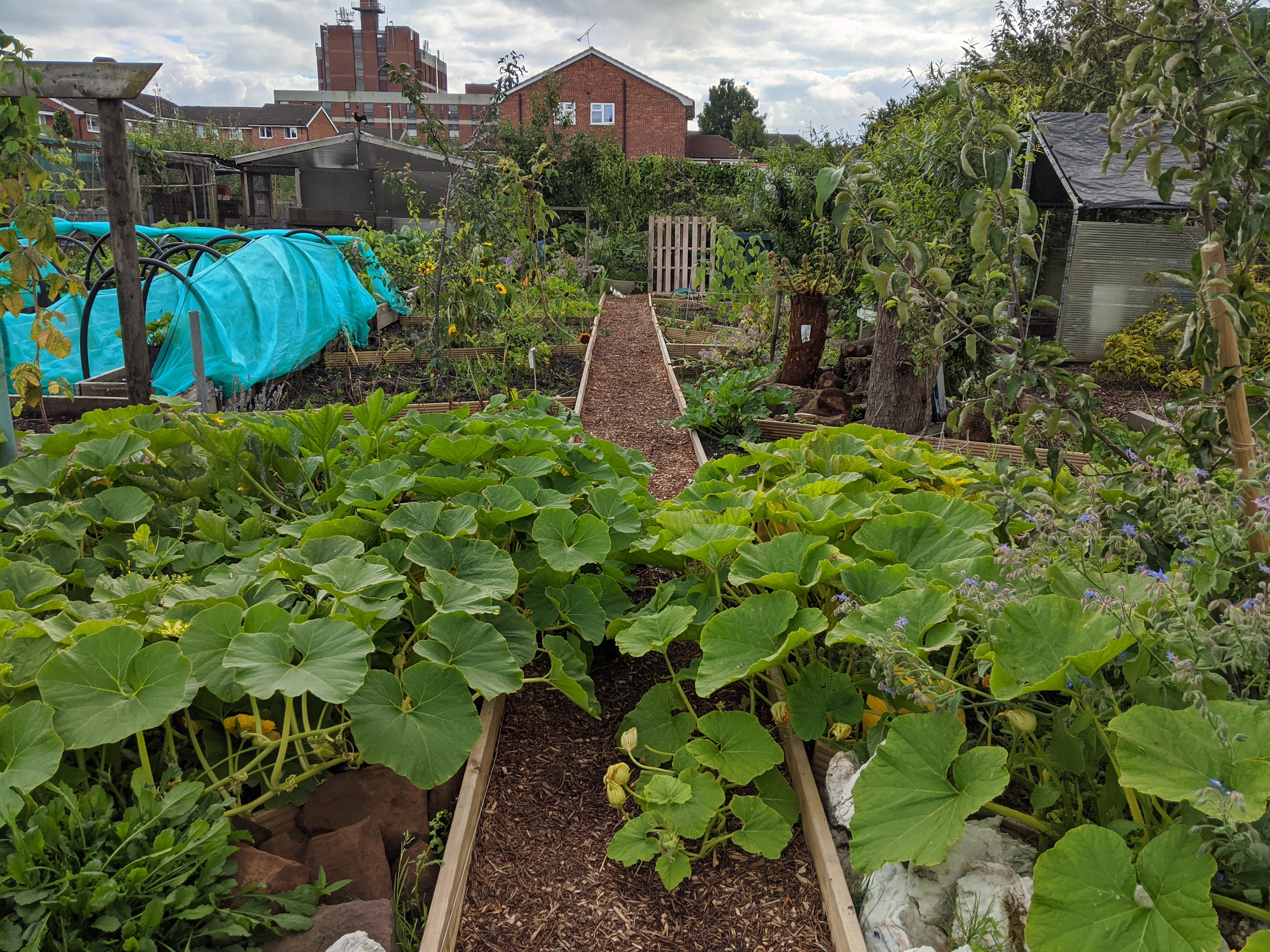 This afternoon I pottered down to the allotment determined to make a start on the community garden pond. Over several months, the weed in the pond has started to choke the water plants. When I arrived, Cliff was busy putting the finishing touches to Sarah and Liz’s pond so I went to sort out the chickens in the main coop. I think we are making progress with Aggie as I only had to turn her upsidedown once today.