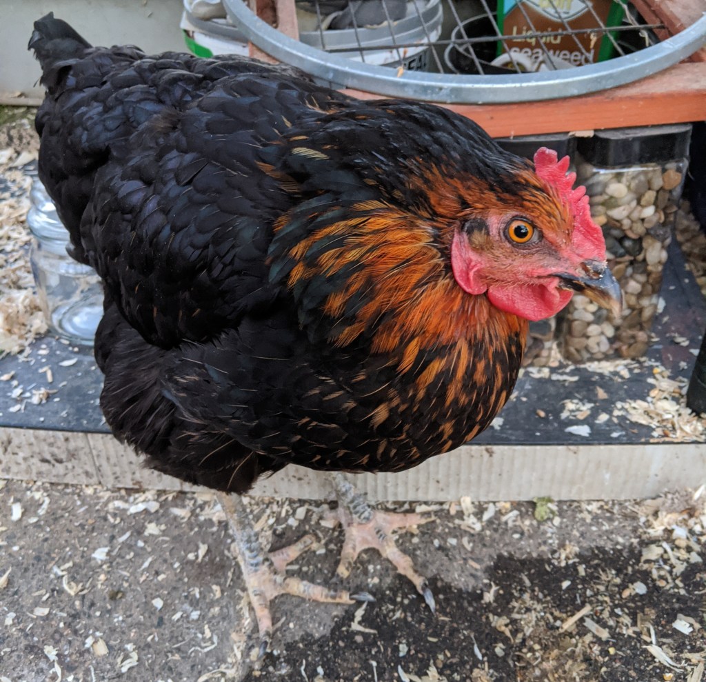 I pottered back to the greenhouse and began to clean out the old bedding. Pop was still standing but has clearly waited to walk until I wasn’t there as she had moved a foot further to the left. Ninja chicken strikes again! The old bedding cleared away and after I lugged the sawdust bag from the main coop, I spotted Sarah. I dashed across to her and shared the exciting news about Pop. She came down and saw Pop on her way home. In typical fashion, Pop refused to walk when we were looking at her. Determined to catch her at it, I half hid myself to one side of the greenhouse door and waited. It took about ten minutes but the wait was worth it! I counted four forward steps, each time she had her feet splayed out and her legs in the correct position. She still has a tendency to cross over her feet but I think she will work out not to do that soon.