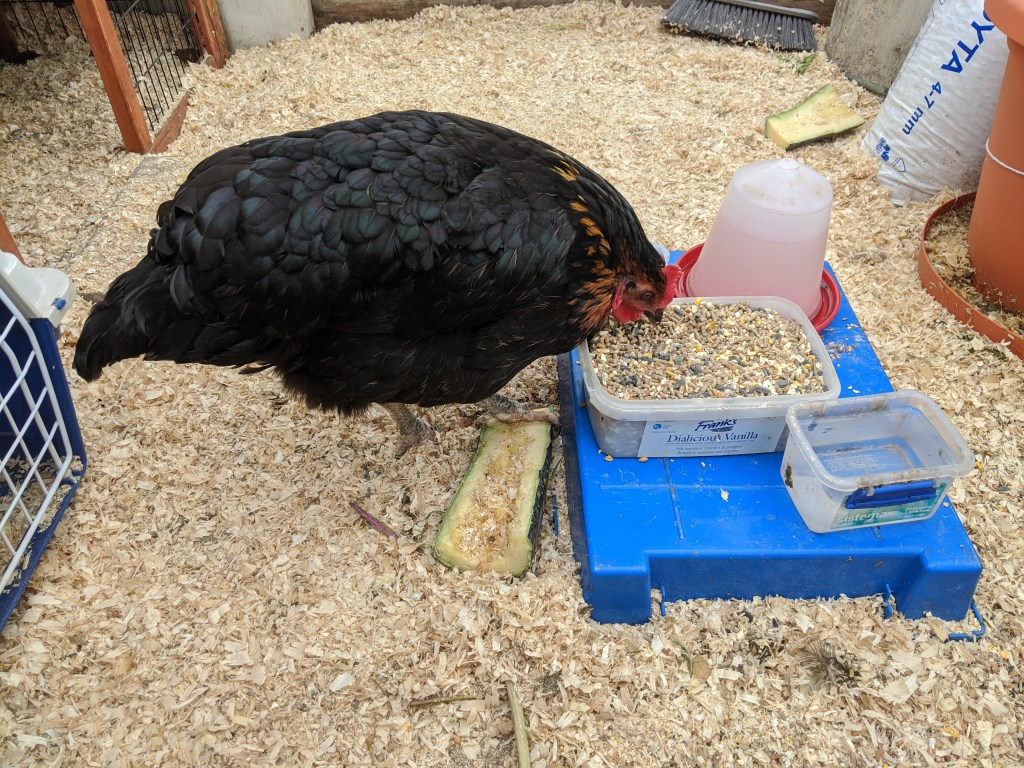 Up in the greenhouse, Pop is increasing in confidence with her walking although she is a little lazy when there is someone nearby. After weeks of having food put in front of her beak, she has come to expect it. Sadly Beak Service is no longer available especially when she has been walking for nearly a week! This was greeted with no small amount of disapprobation. Leia enjoyed some time outside whilst Pop stuck her beak into the food bowl as a consolation prize.