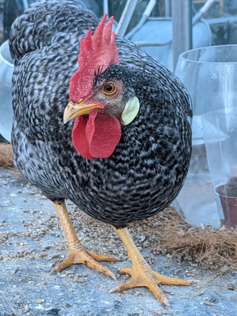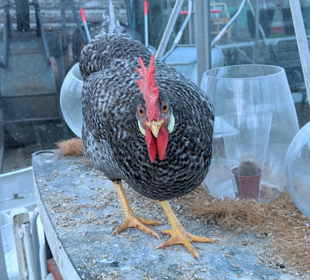 Down in the greenhouse, Lilja and Leia are getting on better although Lilja seems to spend most of her time up on the top of the nest box. She is still quite nervous around me. However, sunflower seeds always seem to go down a treat. I grabbed a handful and held them out to Lilja. She ran away! Rolling my eyes at her, I left my hand out in the hopes she might get braver. Geoff makes chicken whispering look so easy!