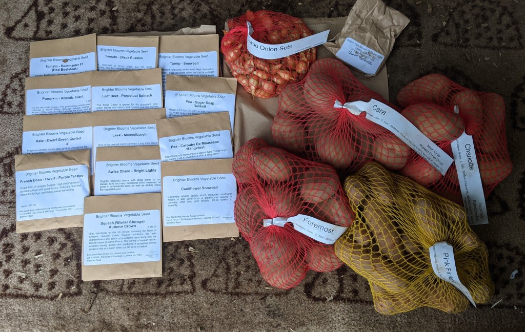 The wind has been really high over night and during the day which has dropped the air temperature significantly. It feels perishing if you have to be outside for more than a few minutes. Sarah messaged me to say our combined seed order had arrived at last. I dropped everything and ran across to meet her.