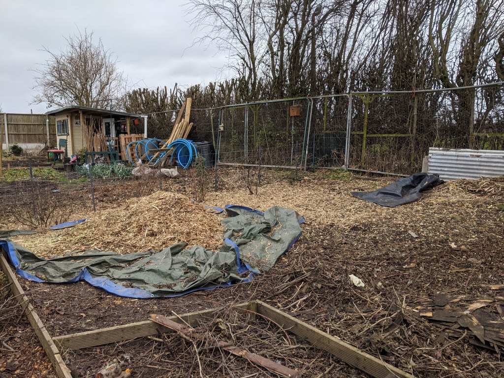 Plot cleared and everyone turning blue with cold, we messaged our friend to collect the chipper and hauled it up to the car park. We said goodbye to Liz and Sarah and thanked them for the delicious bacon butties and purchasing of the safety equipment. Before we left the site, we fed the chickens who were very unimpressed at being fed so late especially as we had been on site all day! Two eggs collected and all chickens tucking into their food happily, we trudged home to warm up!