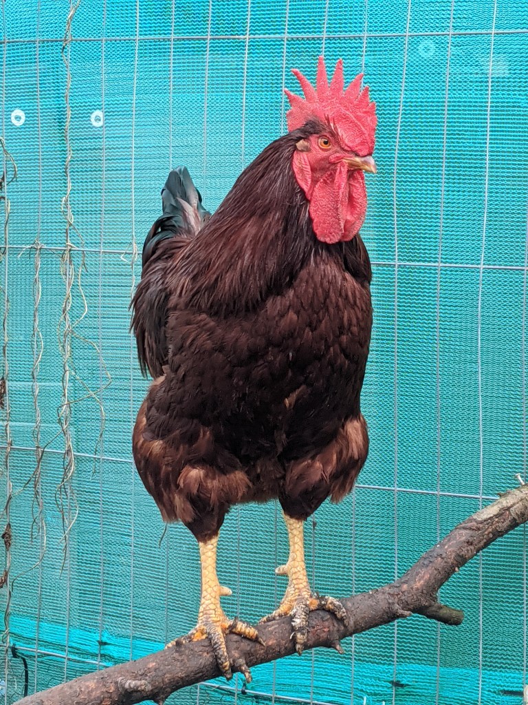 That left Sadie and Roxy in the greenhouse. I moved the run outside and let Roxy mix with Sadie. They have been in the greenhouse together for over a week and I assumed they had got used to each other. A few minutes later, I discovered that it wasn’t. Poor Roxy was being regularly attacked by Sadie. As quickly as possible, I dragged out the nest box and set up the outdoor coop. Grabbing the spare food and water bowl, I put them in with the remaining bedding. As I opened the door and stepped in, Sadie had clearly worked out what was coming. Like lightning, she dashed past and hopped out the door! Sighing exasperatedly, I flowed her, taking care to shut the greenhouse door to avoid another escapee. I took a careful look around and found Sadie in the strawberry bed. It was a genius move as I couldn’t reach down from above to catch her and if I tried to reach in from the side, she could just move out of range. Which of course she did. Eventually, I managed to chase her out of the strawberry bed and catch her by the front of the greenhouse on the main path. This wasn’t what she had planned and if looks could kill…