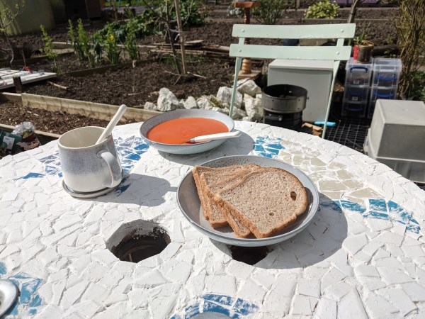 Today I arrived on site at lunchtime armed with a cool bag full of food. After a busy morning at home, I was looking forward to having some time outside. Even the most boring foods taste so much better when eaten outside. Liz and Sarah appeared and we set up the table. With the stove... Continue Reading →