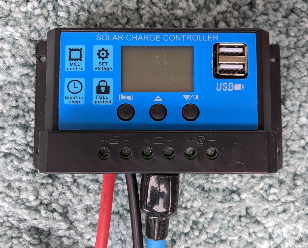 Meanwhile, with the help of my father (who is an electrical engineer by trade), I sourced a solar controller, various cables, a 500W inverter and a large second hand car battery. The theory is simple enough: the solar panel runs power through MC4 connectors to the solar controller. The solar controller limits the amount of power sent to the battery to stop it over charging. The inverter is attached to the battery to power whatever is needed. Surely this would be a simple walk in the park?