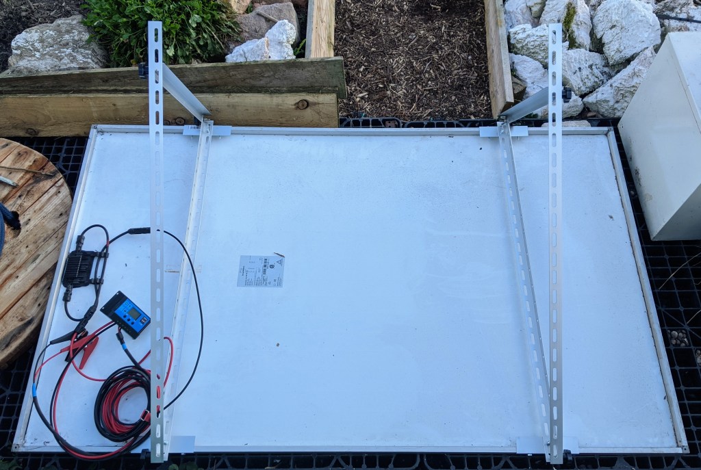 So over the past three weeks, I have actively been searching for a large solar panel. Fortunately, I found a 250W one in Congleton, a mere 20 minute drive from home. We collected it from a farmer and although I had measured the car up beforehand, I was still worried it might not fit. It was with am enormous sigh of relief when it slid in, with millimetres to spare. Instructing my husband to drive very carefully so as not to crack the glass, we drove back to the allotment and put it safely in the shed.