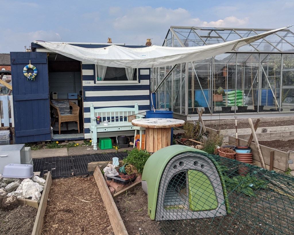 As I had been busy doing all the fencing, my husband had been working on sifting through the dug over soil in the run for any stray bits of rubbish. We went back to the shed for a break and a well deserved nibble. The shed is such a great place to relax in and we listened to some news on the radio before heading back out.