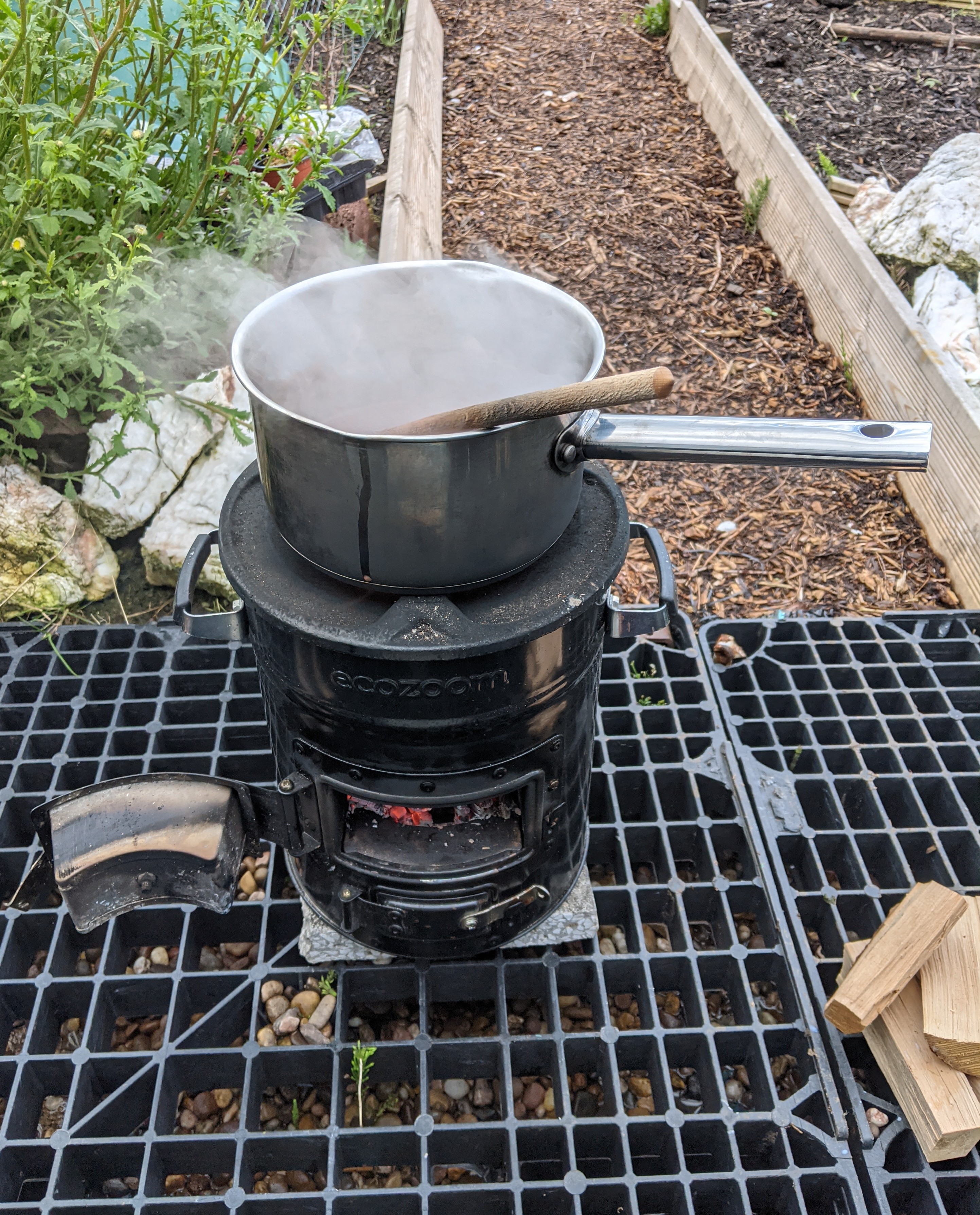 My husband came down with me this morning and helped me feed the chickens and collect eggs. Roxy was distinctly unimpressed when I reached into the nest box to furtle beneath her for eggs. Once all the chickens were fed and watered, my husband disappeared off home whilst I set up the stove and enjoyed sitting outside in the short dry spell between showers.