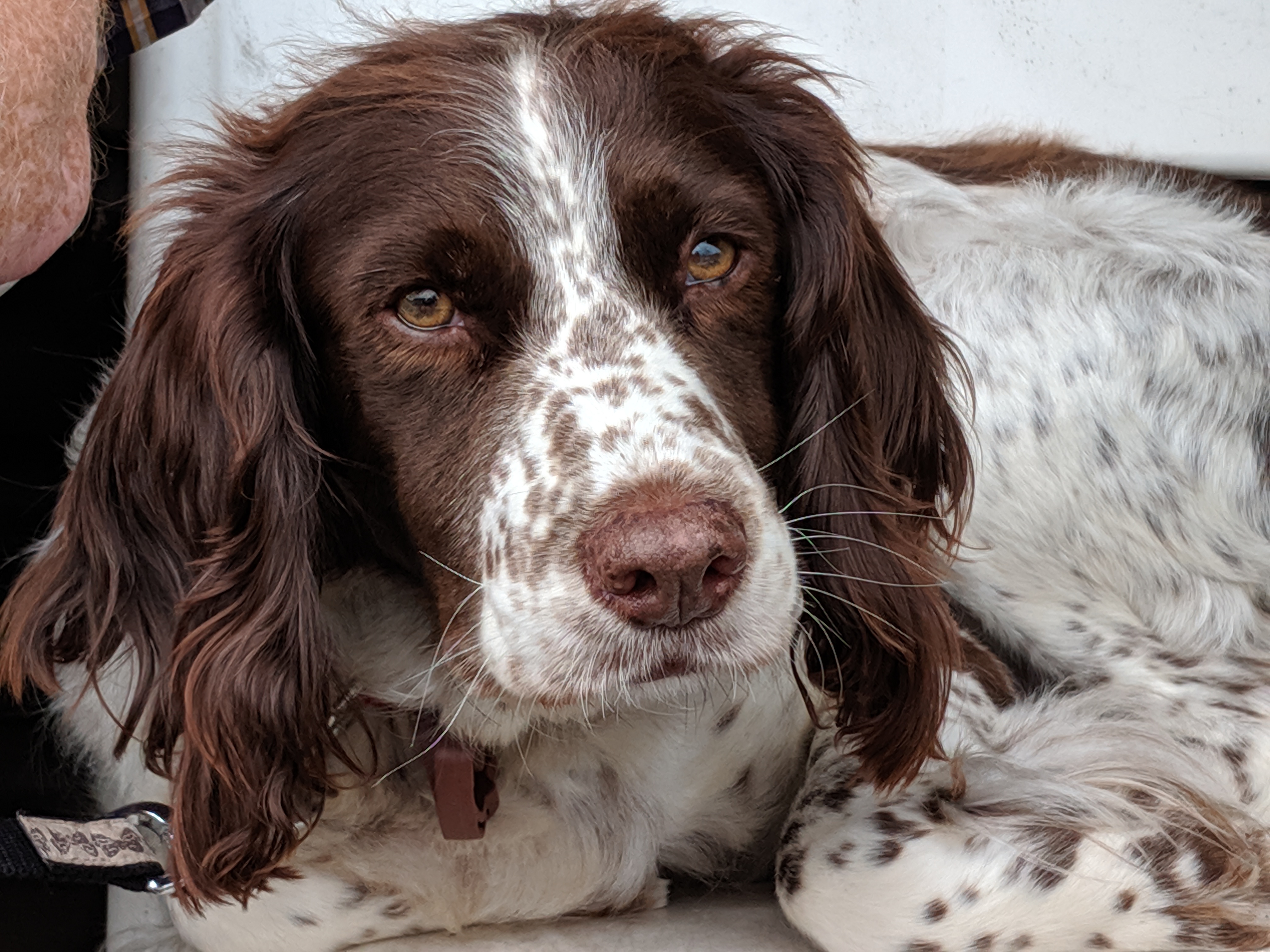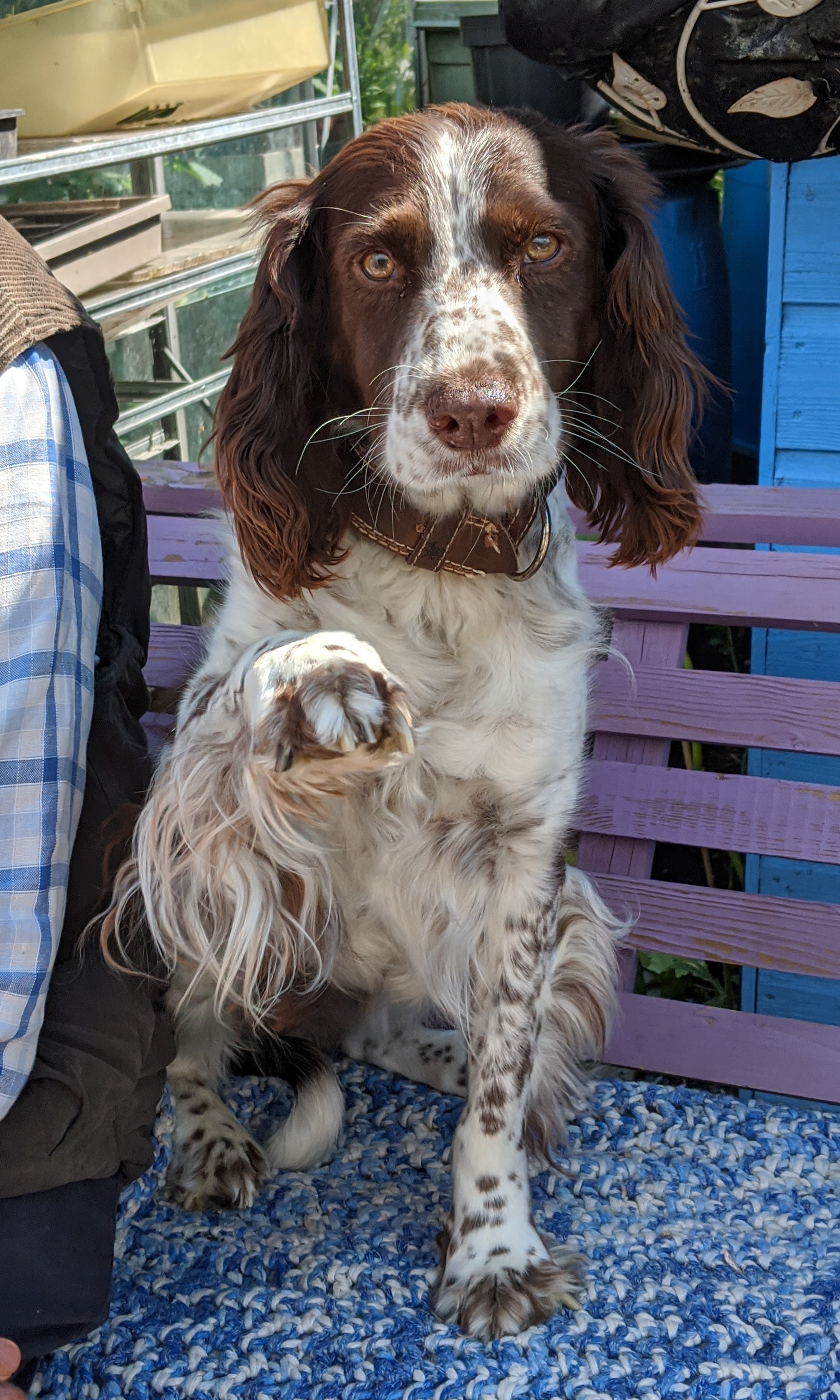 When I popped down to check on Trixy in the afternoon, I found her equally as angry at being disturbed on her nest as in the morning. Pleased that she had spent several hours on the nest without leaving, I dashed across to tell Cliff the exciting news. He had some news of his own. Sadly, Koko has passed away a few days ago. She was not only a beautiful dog but a wonderfully faithful companion to Cliff. I’m not a dog fan, actually being rather scared of them. But Koko was the gentlest, kindest dog I have met – I will miss her very much. There are very few dogs who achieve the Gold Standard of approval from me. Koko was definitely one of them. Upsetting as hearing about Koko was, Cliff also had some good news. One of his work contacts found out that Koko had died and hatched a plan. When Cliff visited him, he told Cliff to join him on a drive and took him to a local farm. There Cliff met a gorgeous little of Springer spaniel puppies. Cliff met all the different puppies and other dogs on the farm, and left after reserving two liver and white puppies. He will be picking them up on Friday and plans to bring them to the allotment on Saturday! With Cliff’s experience raising spaniels, I am sure they will have an incredible life as well as keeping Cliff on his toes!