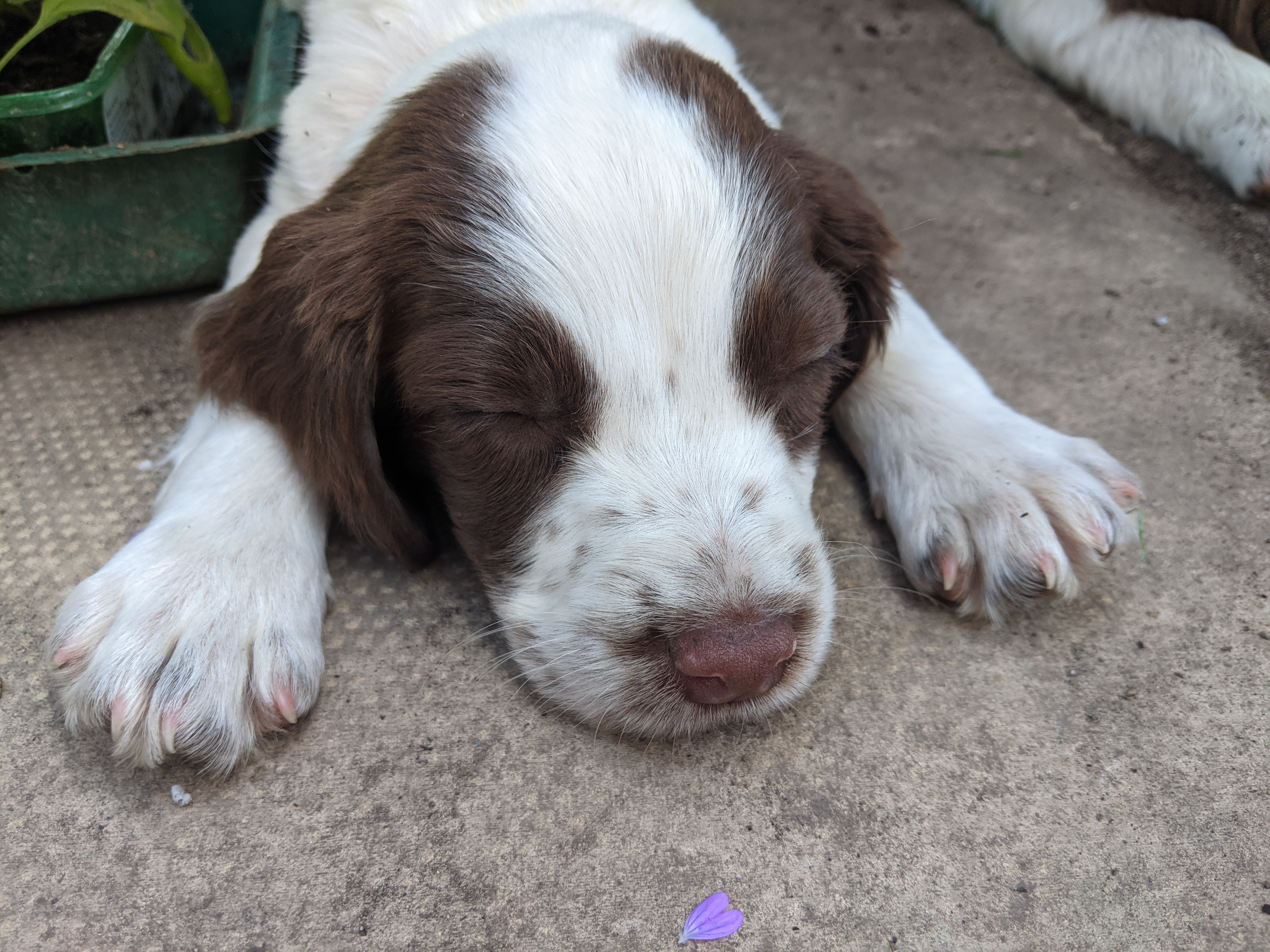 Molly is currently half the size of Dolly and is much more food orientated. She has such a beautiful little face, with such a happy personality. As the runt of the litter, she was quite poorly and the farmer kept her in an incubator to try and help her survive. Fortunately for Molly, Cliff has a wealth of experience with spaniels and has several tricks up his sleeve to help her thrive.
