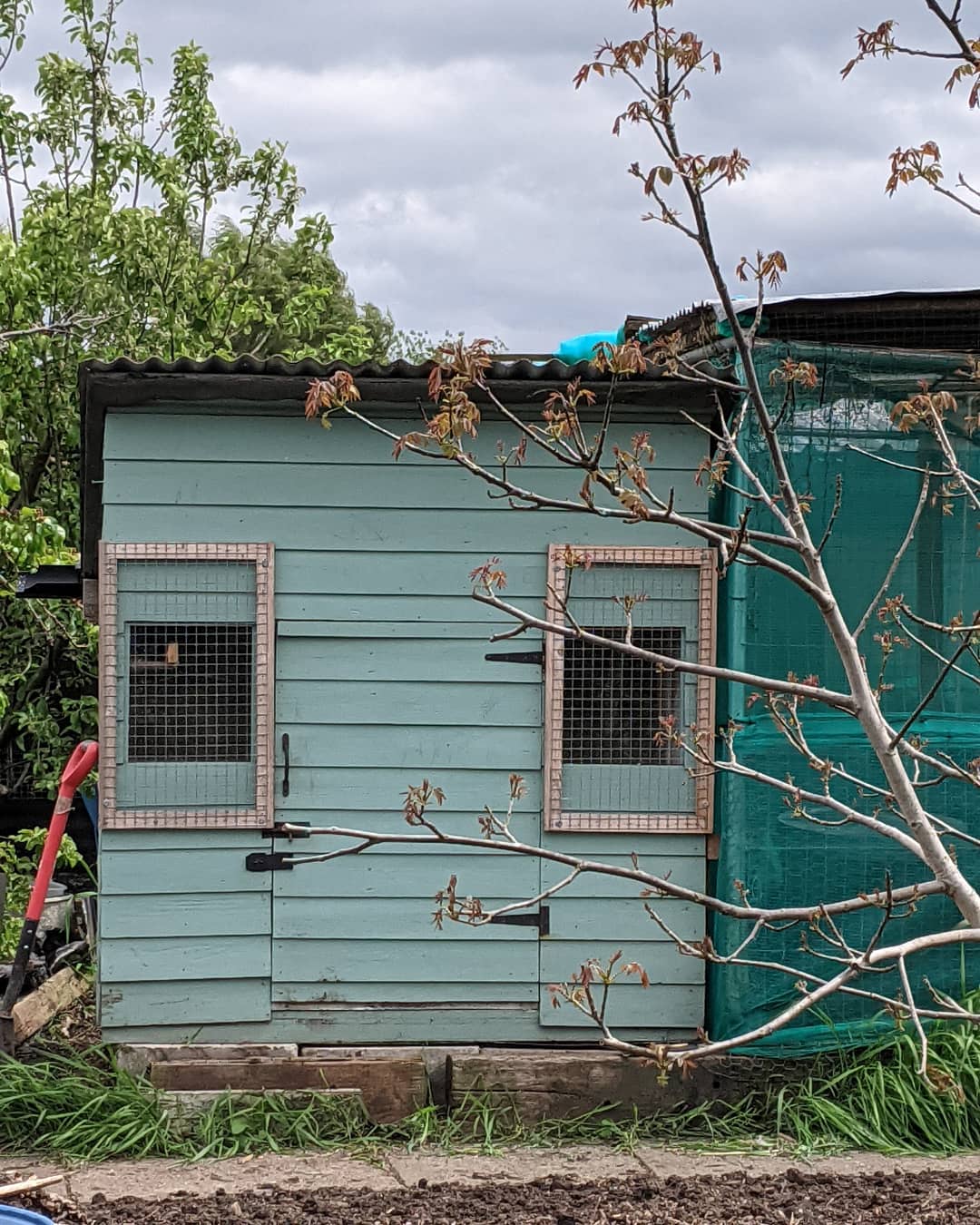 Meeting over, I quickly put the Omlet together and herded Foxy and Roxy back into their run. Locking up the shed, I piled up all the remaining bedding and cleaning supplies onto the trolley and lugged it all home.