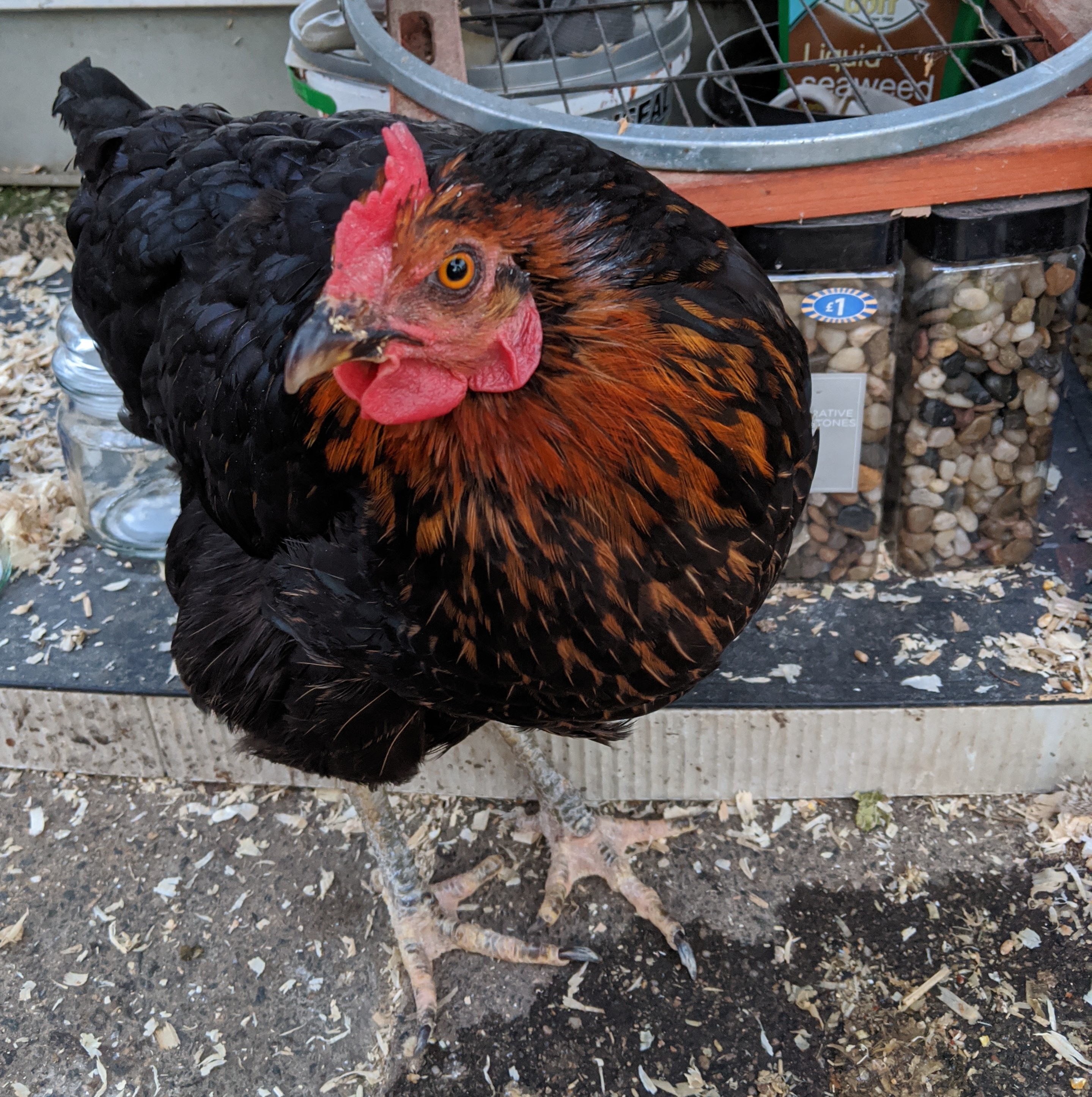 For those of you who have been reading the blog since the beginning, early on in our chicken keeping, we rescued Emily. Emily was the sole survivor of a fox attack which killed all the other birds she lived with. Incredibly, she escaped and lived free on site for several days before we managed to catch her. As a temporary measure, we put her in our coop with our girls. When her owner decided to give up having hens, we kept her. Emily was a gorgeous light Sussex but had a filthy temper and PTSD from the fox attack. She was an amazing broody, raising several clutches of chicks for us and for other plot holders. Thus my love of Light Sussex hens was born. More recently, we inherited five Black Rocks from Geoff. They were wonderful and had great personalities. Pop was a favourite and when she had a stroke last year, I built her a wheelchair. Miraculously, she regained her legs after spending weeks unable to stand or walk. She spent her retirement eating greens, sunflower seeds and sunbathing in her favourite outdoor flower pot.