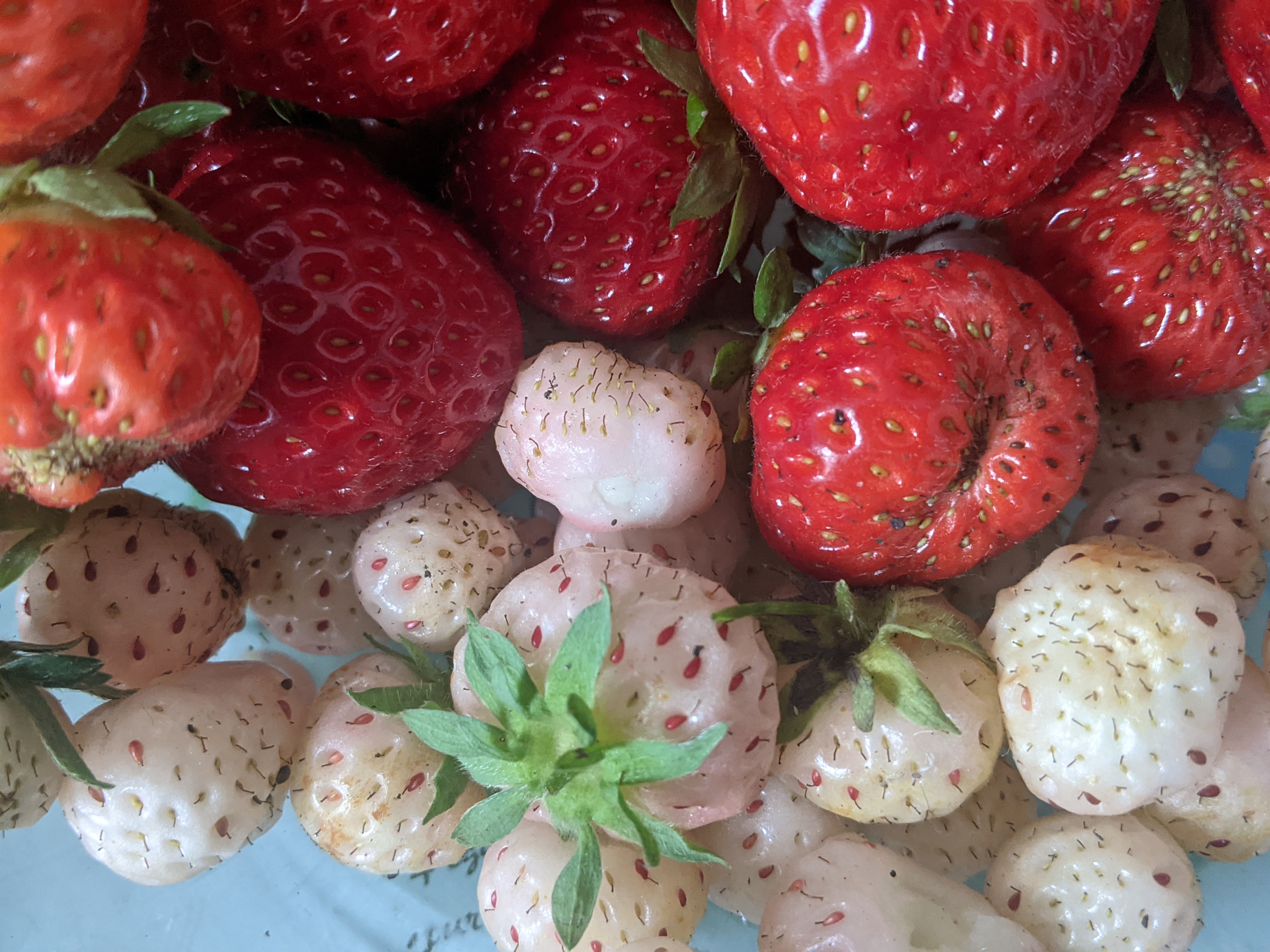 Apart from feeding the chickens and checking that the new girls are coping in the main coop, we spent half an hour harvesting the first of our crops. As my husband got busy picking our white strawberries, I ran around making sure that all the chickens had a full water bowl. Chickens can’t lower their body temperature very easily and it’s vital to make sure they have a large supply of fresh water when it’s hot.