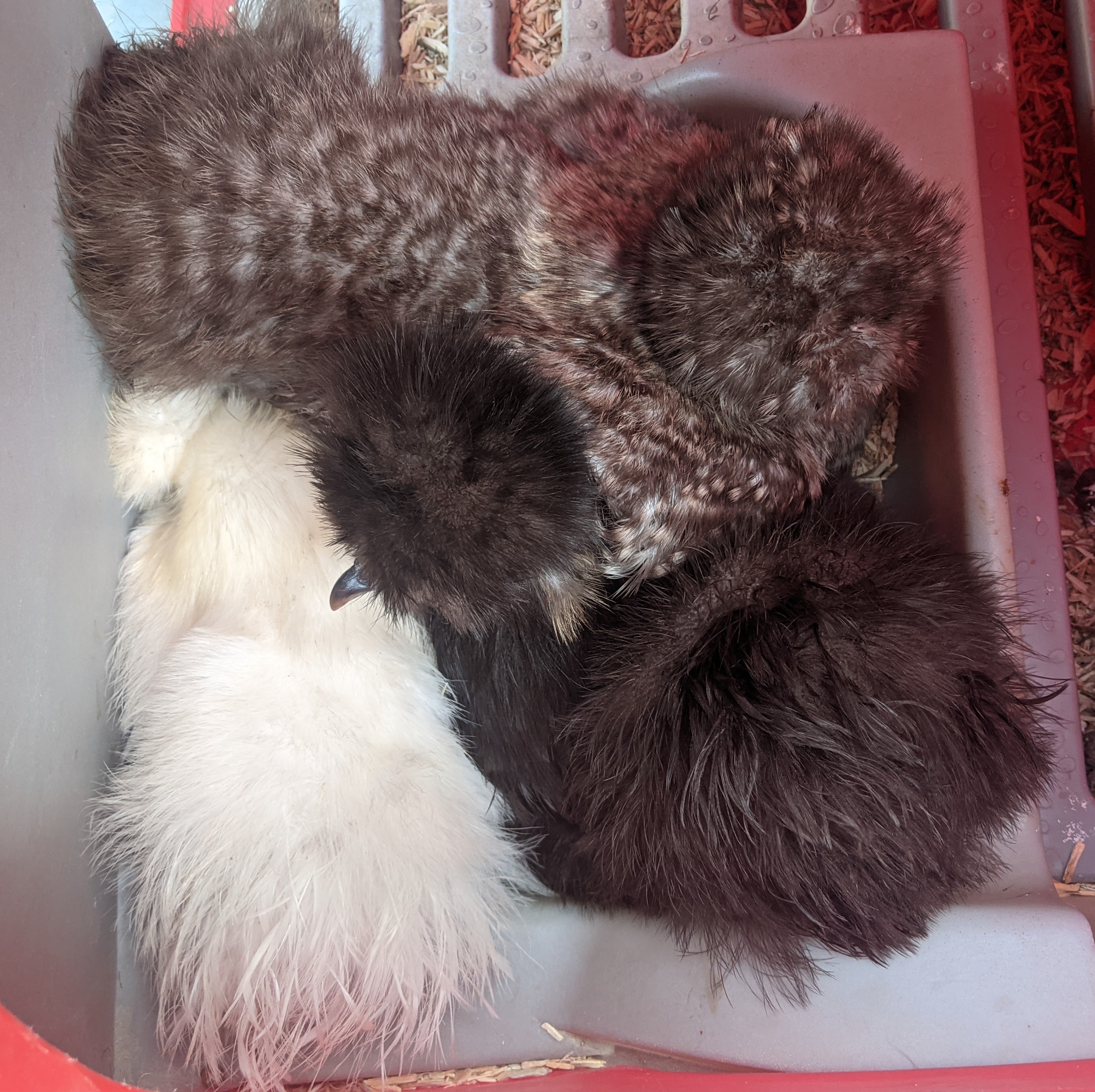 When the coops were dry, I replaced the bedding and reassembled the nest boxes. With my husband’s help, we moved the chicks back into the broody coop. They seemed very happy with the new run flooring and tucked into their growers pellets. By now, the silkies had taken themselves back into the run. Cirrus and Stratus were both crammed into the nest box again. Utterly exasperated, I picked up Cirrus and put her in the inside coop. “if you are going to be broody, then be broody in here.” I told her severely. She showed no signs of wanting to sit in the nest box. When we checked an hour later, she still wasn’t interested. It’s moments like this that I feel like I am being taken for a fool by these birds! So I tried swapping Cirrus for Stratus. The same thing happened. Giving up, I dumped Stratus unceremoniously back into the nest box. Honestly! I knew silkies were broody but this is ridiculous! Cirrus has been trying to be broody for at least 4 weeks and Stratus is going on two!