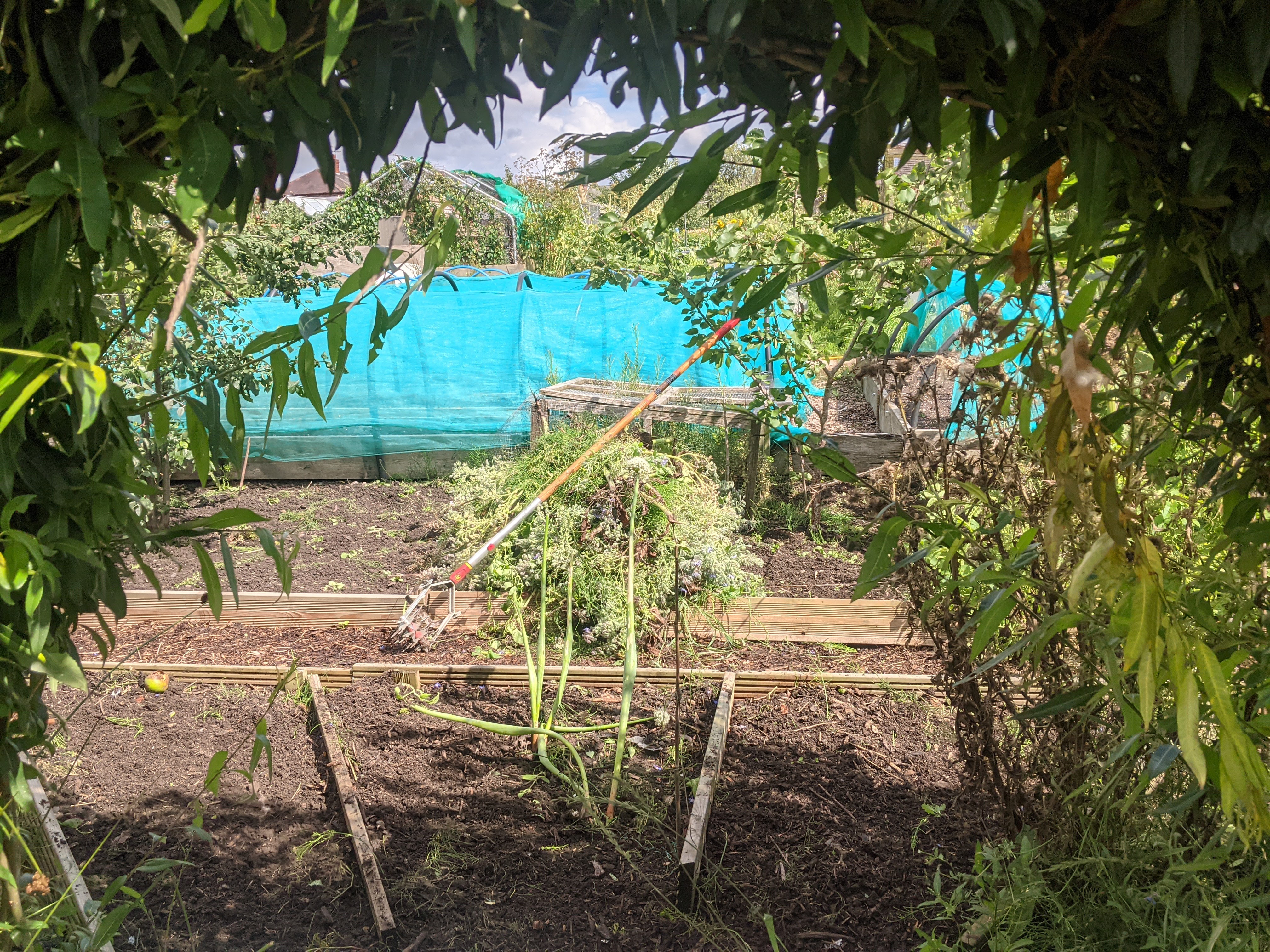This morning was a total wash out. Really heavy showers and high winds which saw me curl up on the sofa and watch the Olympics until it stopped. After lunch there were signs of a break in the rain so I grabbed my keys and ran down to the plot.