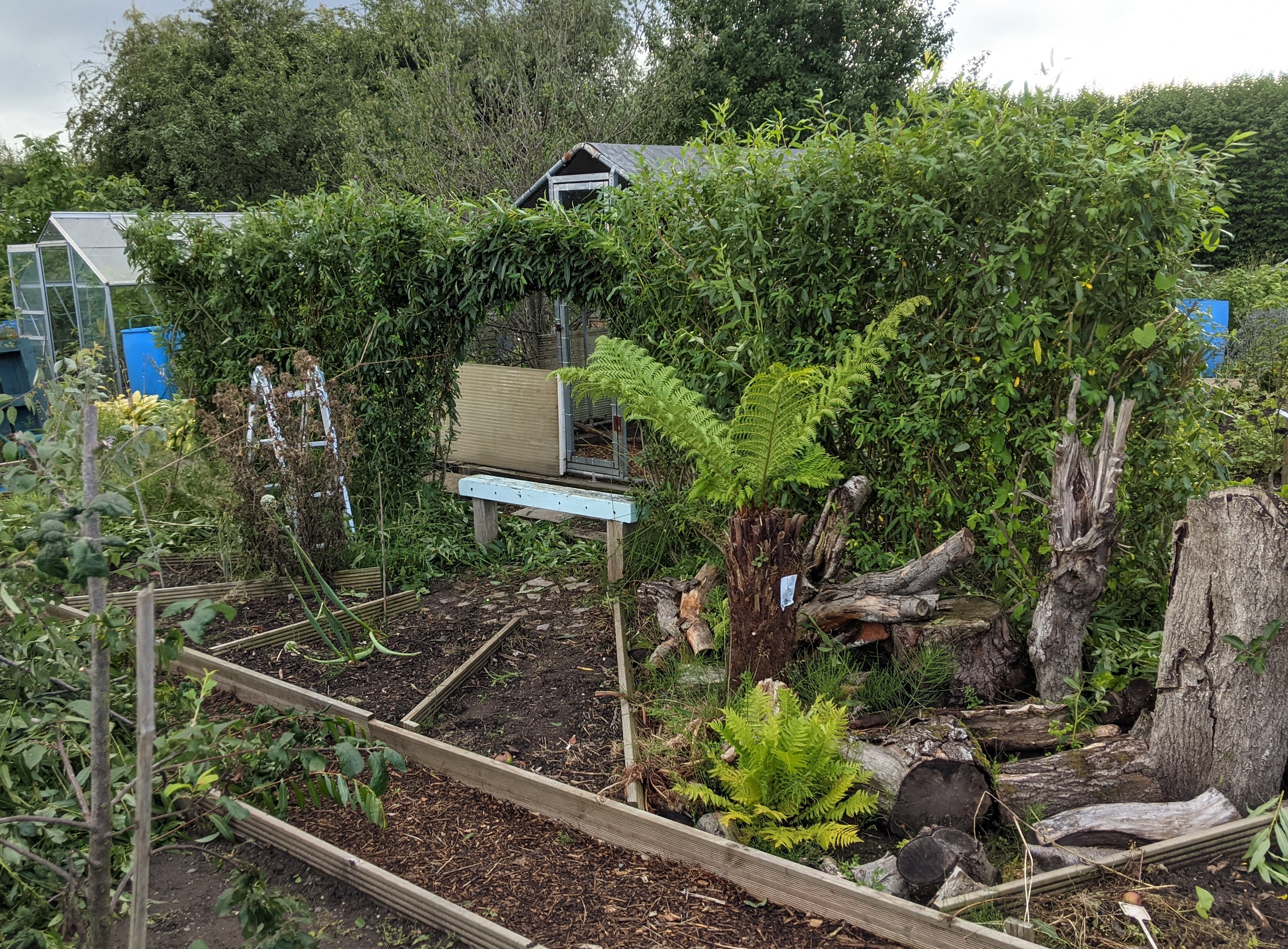 On our plot, I grabbed the secateurs and began hacking at the willow screen by the shed. Its grown so high that I couldn’t lop the top off without standing on the step ladder. Some of the willow was grown really thick and it was hard graft to cut it but I was pleased with the end result. On a roll now, I moved onto the willow arch. After another hour, I had pruned back the willow on the path side and began working my way back towards the shed on the other side.