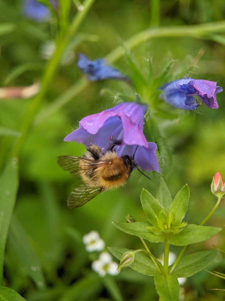 Jumping back into the car, we dashed back to meet the lady who had lost her cat. I walked her around where I thought the cat had gone after jumping through the fence. Apparently his name is Hugo and he is 11 years old. His concerned family spent quite a while walking around shouting for him but without any luck. We arranged that they would drop back later this evening to try again. With the cat people leaving, I walked up to Cliff’s shed and we sat enjoying the sunshine. It was really hot so I ambled across to the corner shop and picked up a couple of ice creams. There really is nothing like sitting in the sunshine, surrounded by flowers and enjoying a delicious ice cream!