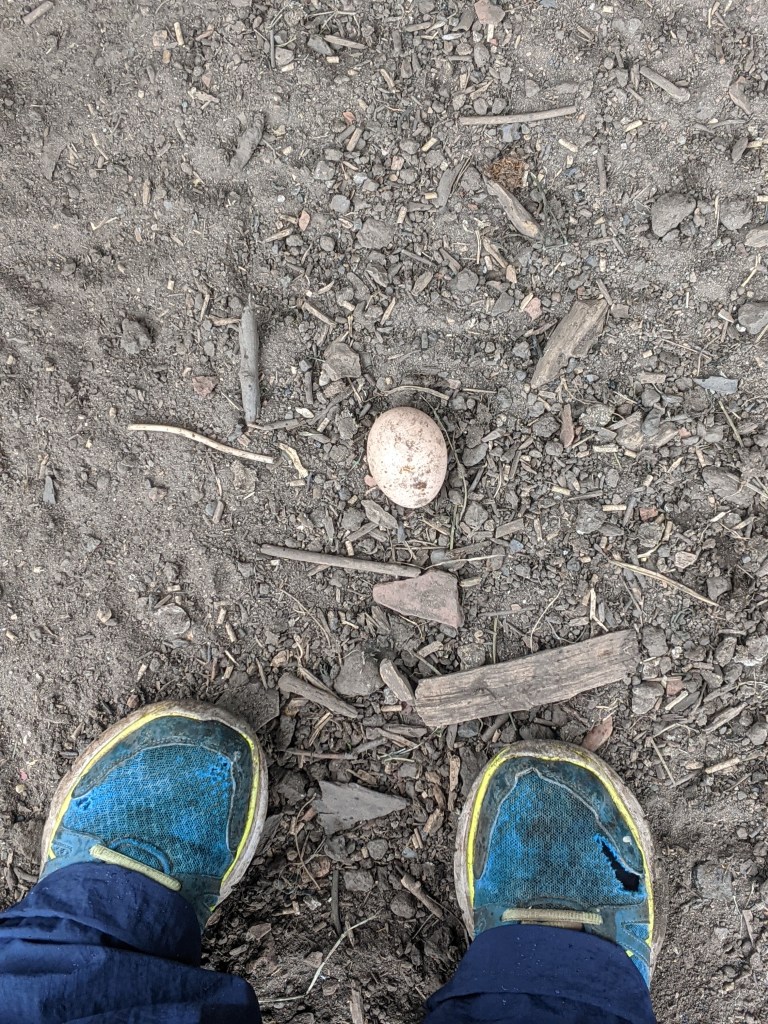 Today, the egg hunted continued. Four beautiful eggs collected from the nest box which was an improvement from yesterday. Imagine my exasperation when I spotted an egg laid in the middle of the run. Whoever the culprit was yesterday has set a dangerous precedent as this egg was a different colour, clearly laid by another hen!