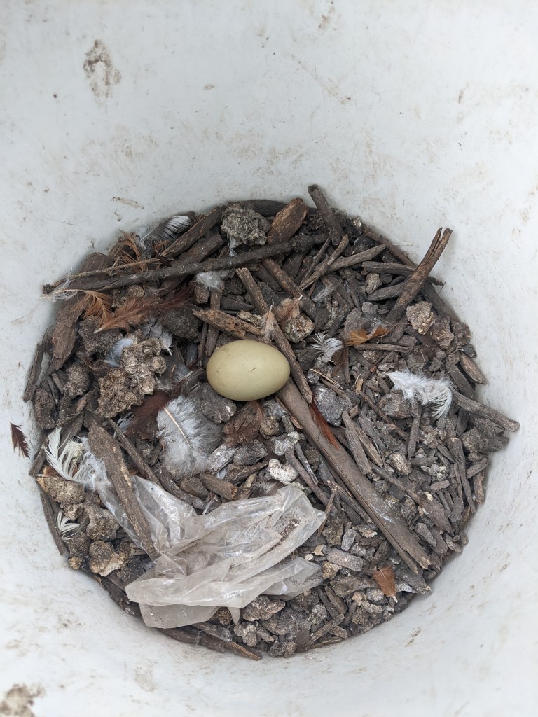 To my horror, I discovered an egg in the poo bucket! What idiotic bird decided the poo bucket was a better option than the clean nest box?! The green egg has only appeared recently and I’m not sure who the culprit is yet!