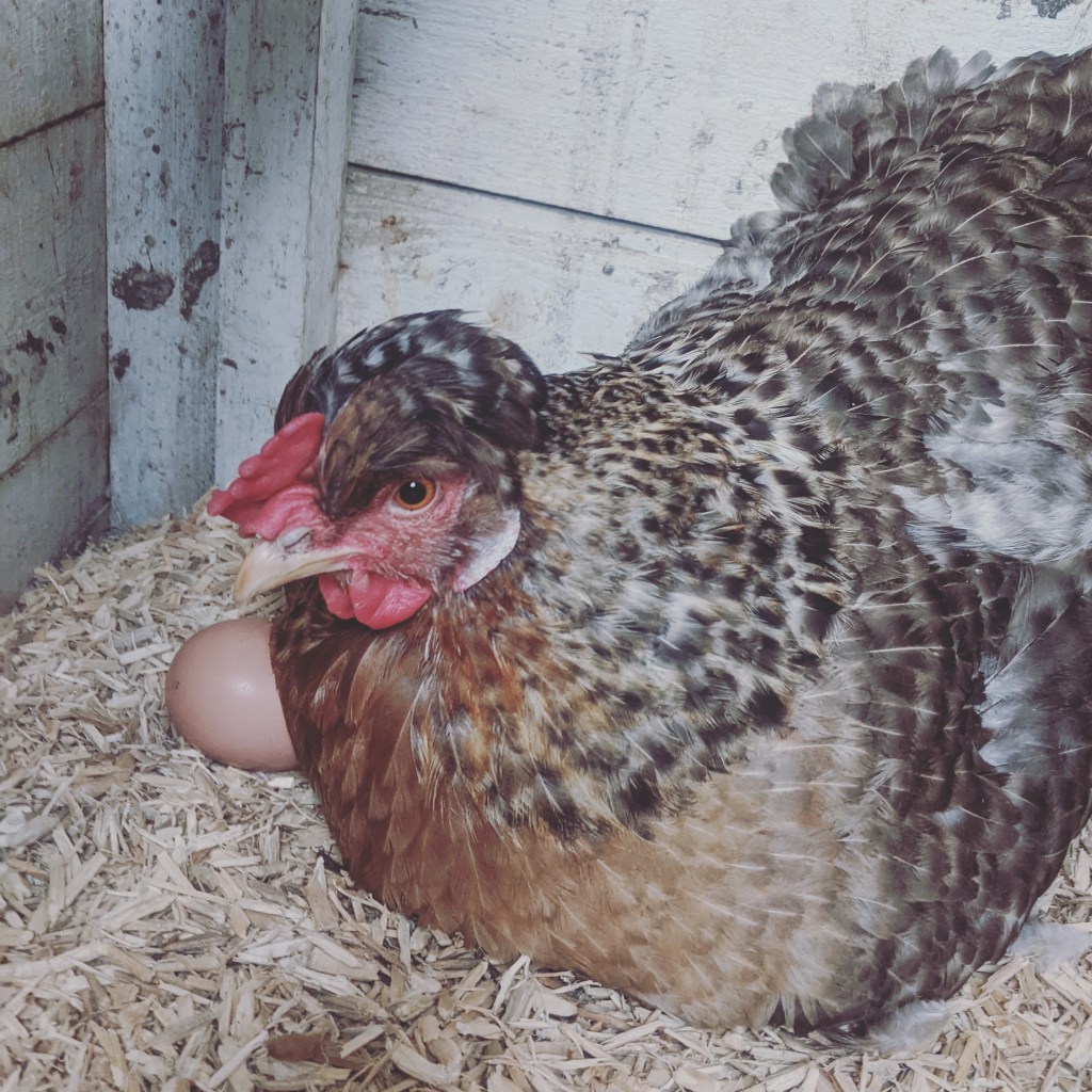 Closing up the shed, I walked home for lunch and to write up the minutes. Later in the afternoon, invariably once the heavens had opened, I dragged my husband down to the plot to help me fend off Tommy as I unceremoniously turfed Polly out of the nest box. I couldn’t believe how many eggs she was sitting on! Just shy of half a dozen! With the Nest House door blocked, I threw them all into an egg box and beat a hasty retreat.