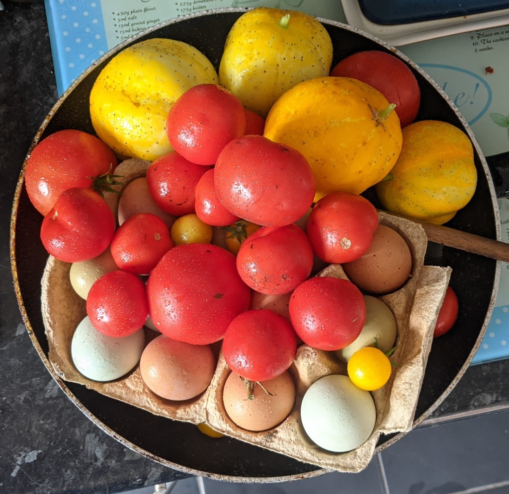 Just before we headed back, we picked some tomatoes for dinner and also another four lemon cucumbers. Both the tomatoes and the lemon cucumbers just keep going! I know they will stop eventually, but it’s amazing how many we have had.