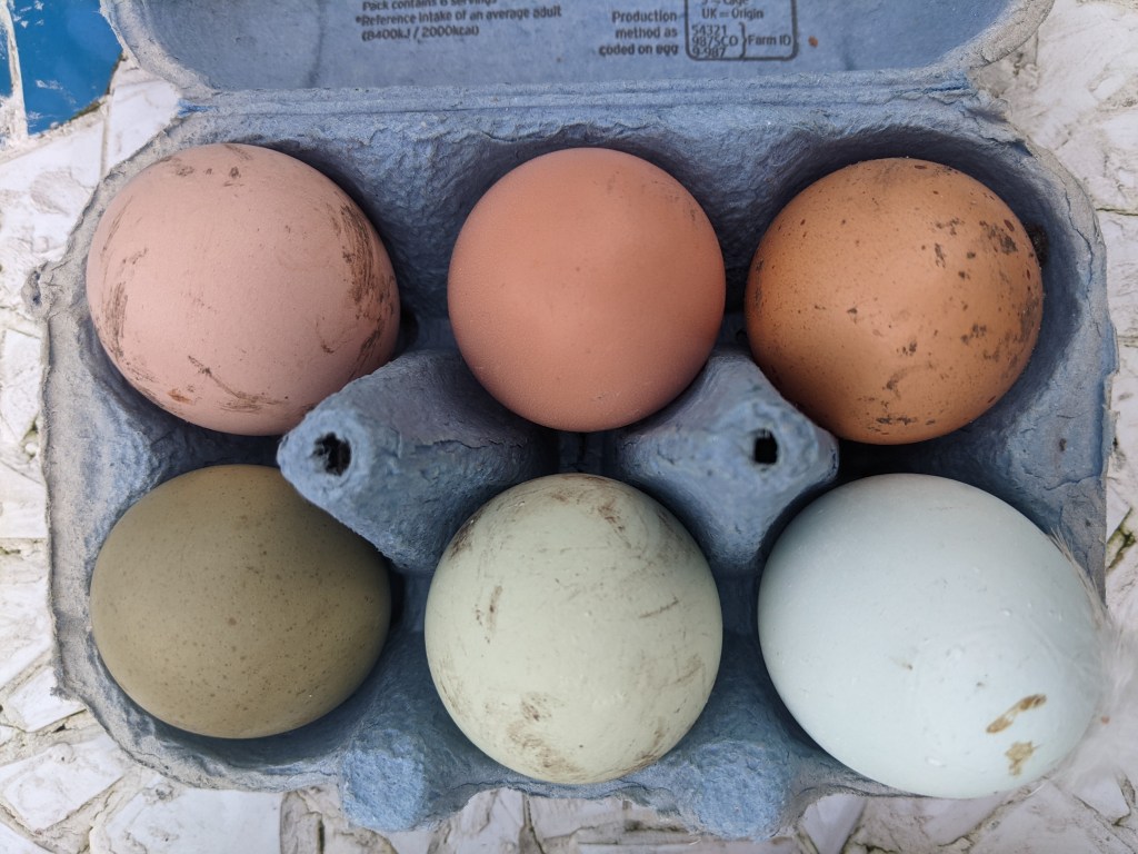 Down in the main coop, I collected five eggs from the nest box. Somewhat disappointed, I began to tell the girls off before realising there were another three eggs that had been laid in various places around the coop! Rolling my eyes in exasperation, I collected them from the floor. I suppose I should be eternally grateful, they weren’t laid in the poo bucket…